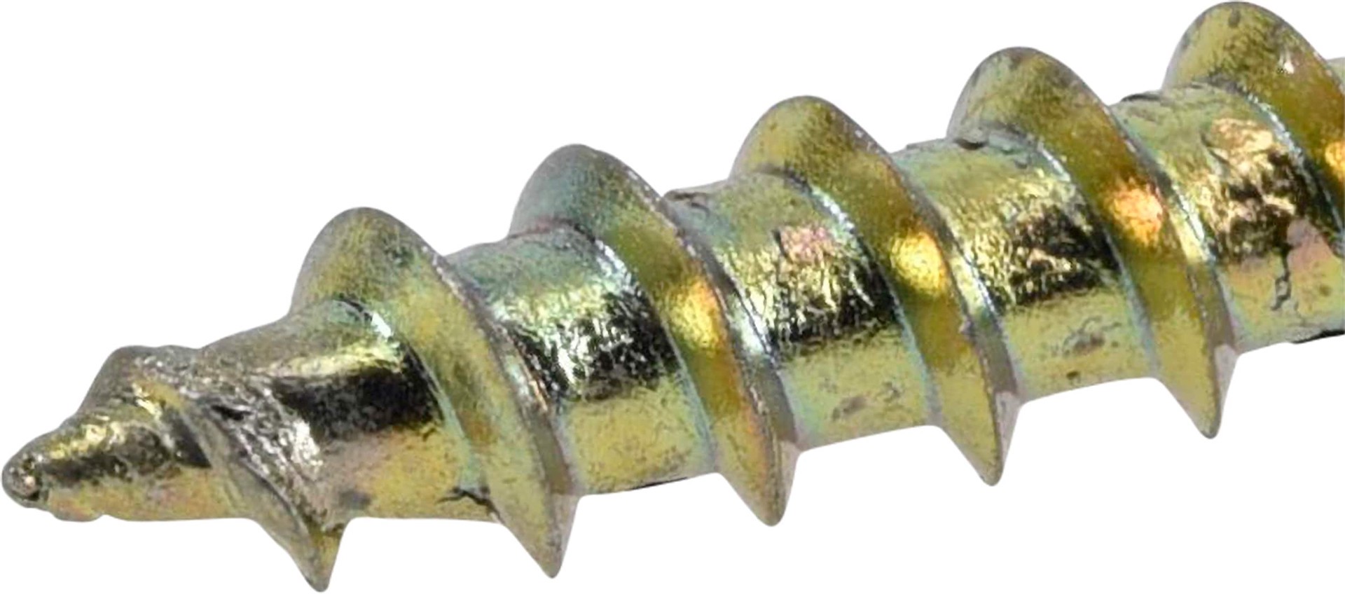 Provides better resistance to pull-out in particle board. Threads are asymmetrical. Flat Head countersinks into the material for a smooth surface area. These screws are self-tapping and have a sharp p…