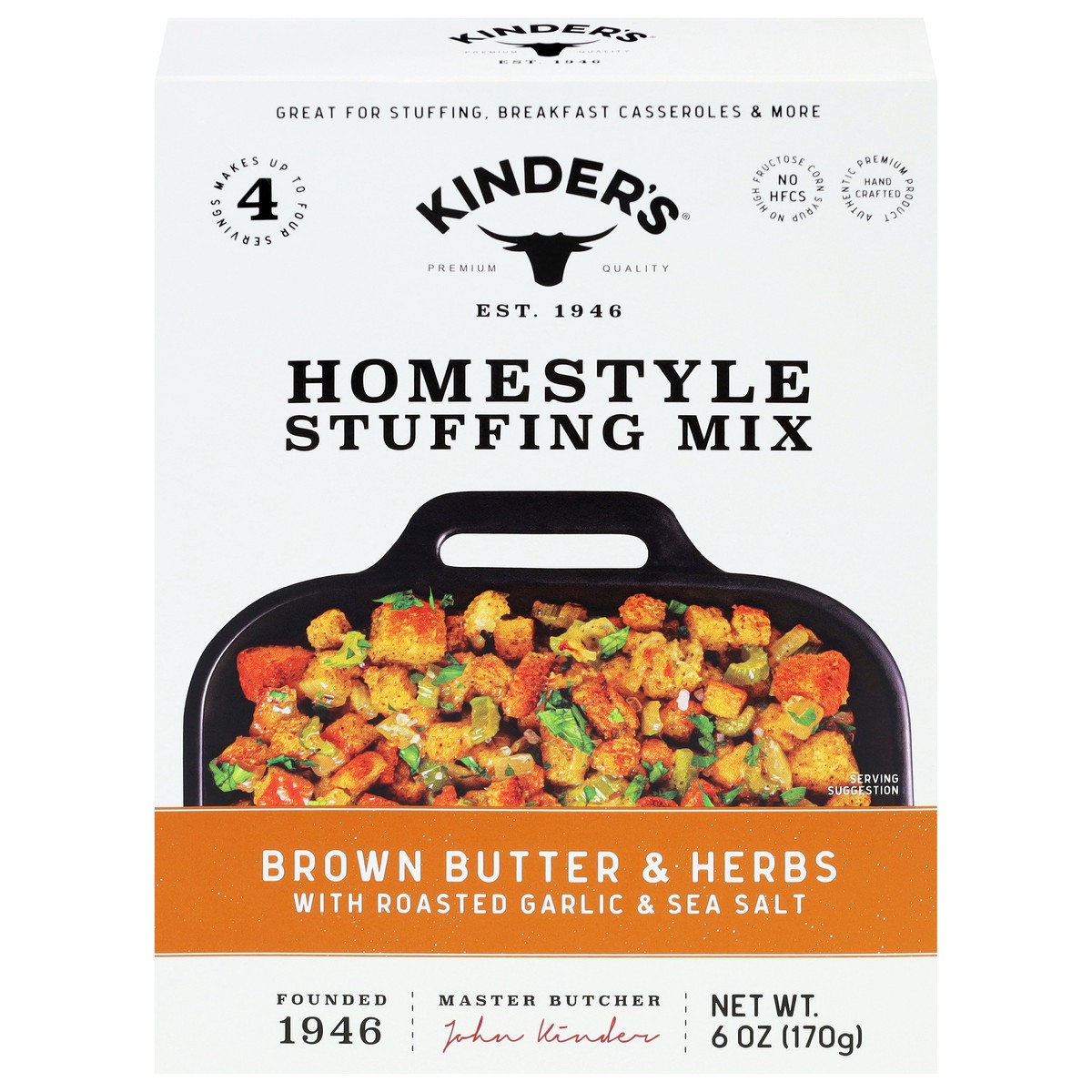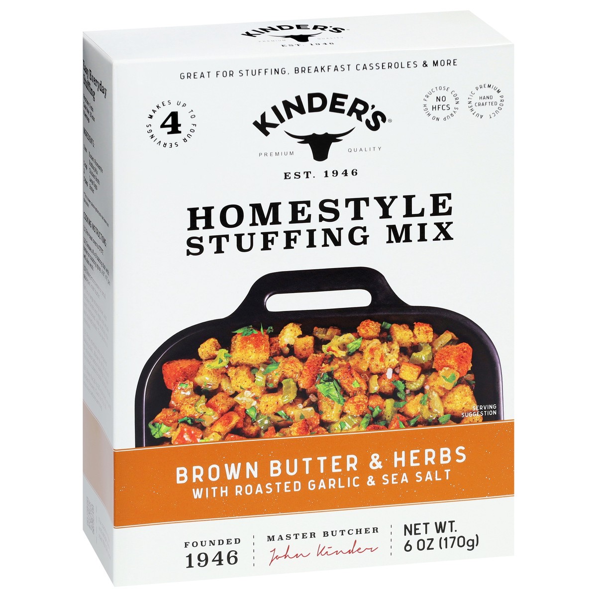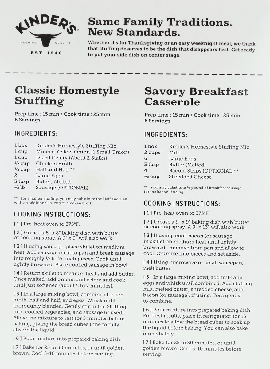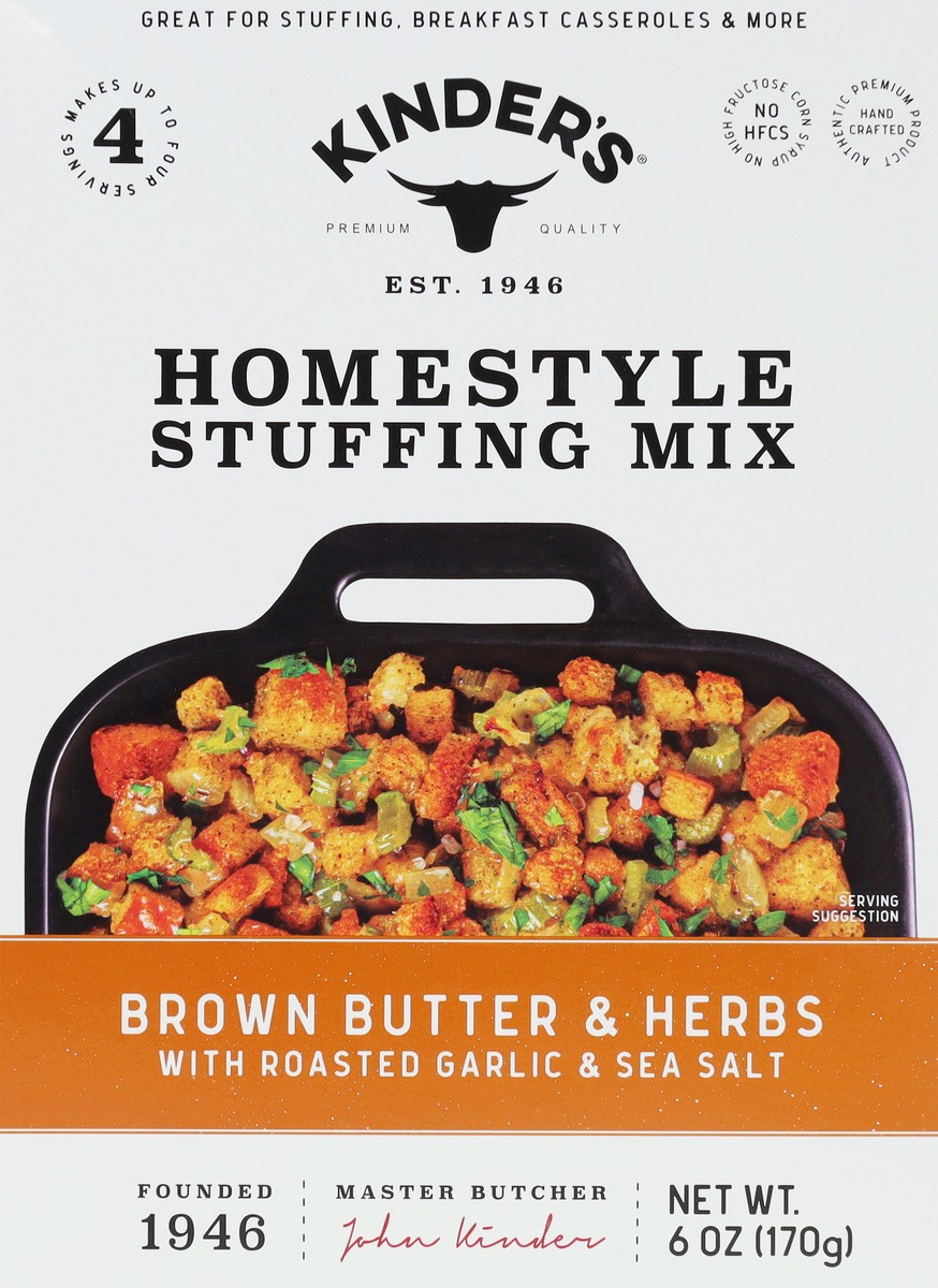 Kinder's New Brown Butter and Herbs Homestyle Stuffing Mix brings the perfect balance of flavor and texture to your holiday stuffing. It is crafted with a delicious blend of brown butter, aromatic win…