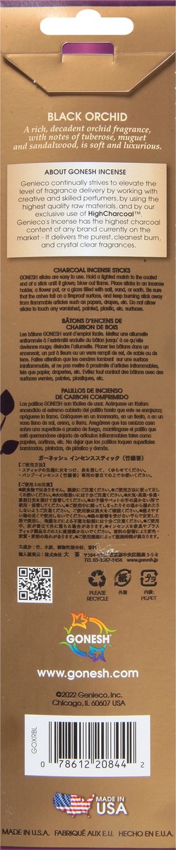 Premium quality. The best incense. Black Orchid: A rich, decadent orchid fragrance, with notes of tuberose, muguet and sandalwood, is soft and luxurious. About Gonesh Incense: Genieco continually stri…