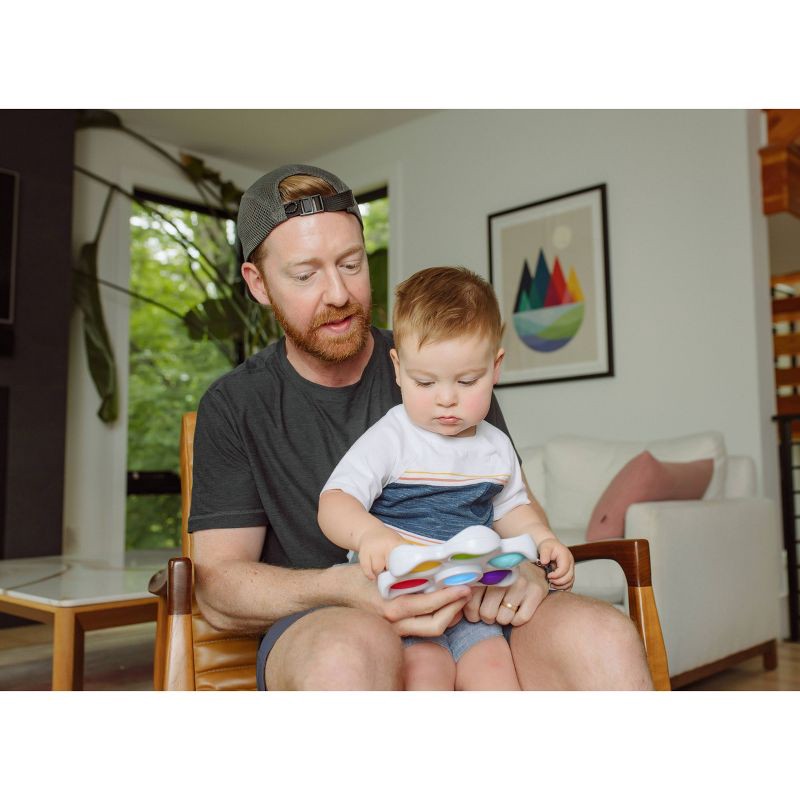 Pop It! & Learn is a first-of-its-kind sensory & learning toy for infants and toddlers with 3 grow-with-me ways to play: 1) Explore: Pop It! & Learn lights up and speaks based on which bubble was popp…