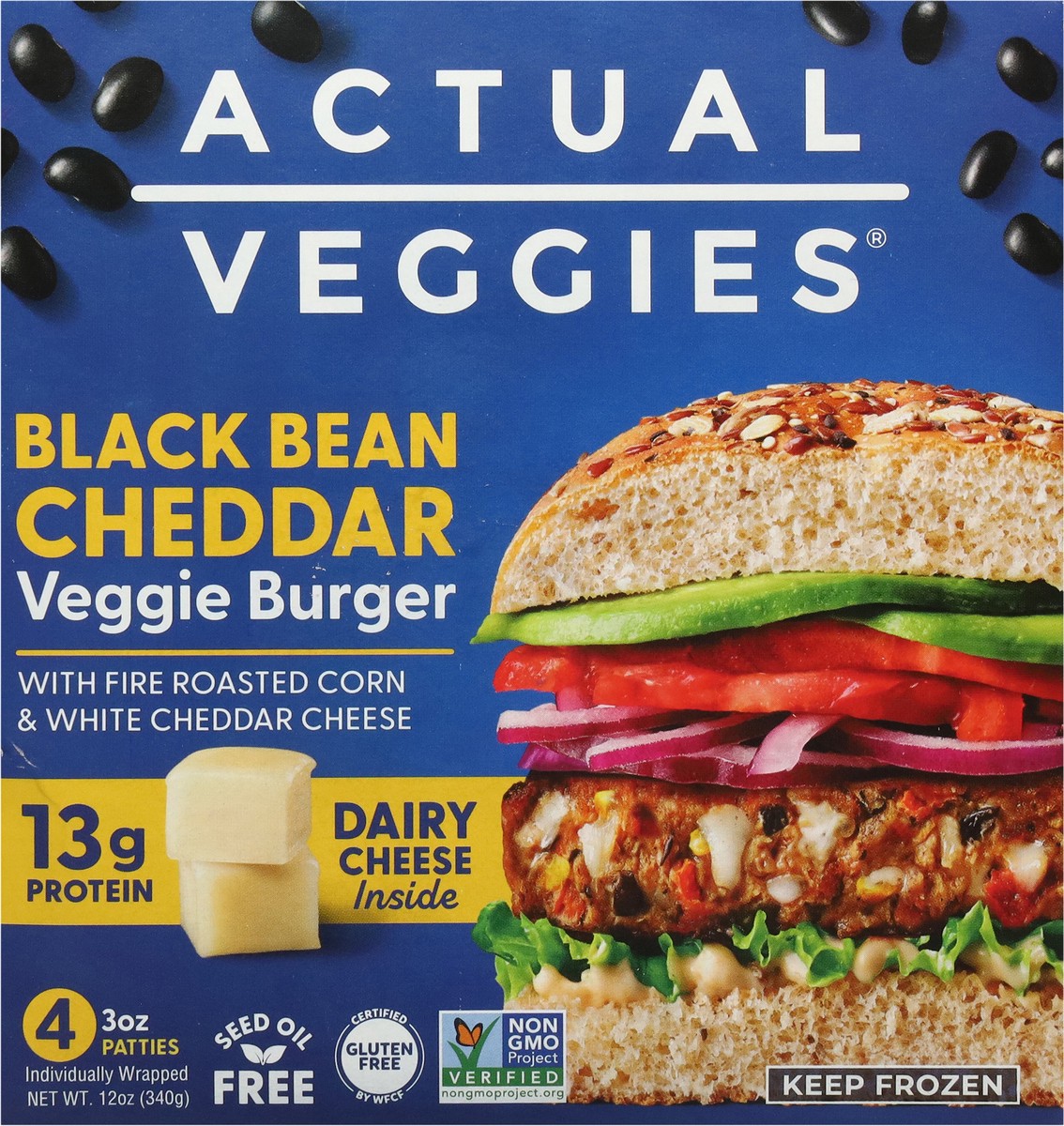 Actual Veggies Black Bean Cheddar Veggie Burger - 4 - 3 oz Each