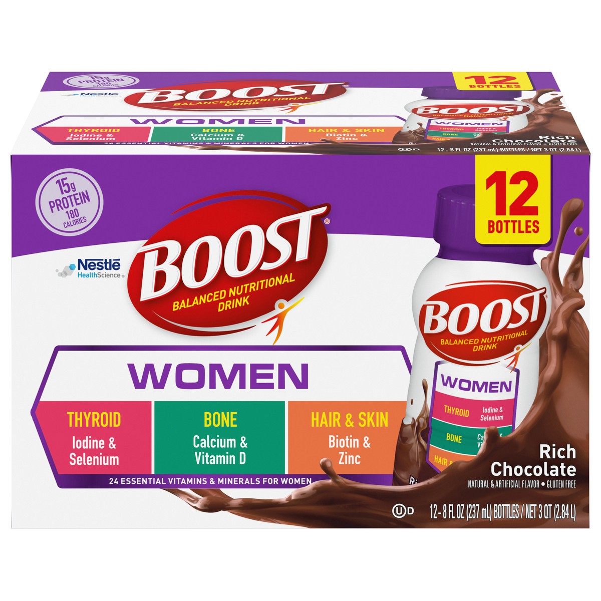 BOOST Women Ready to Drink Nutritional Drink, Rich Chocolate, 12- 8 FL OZ Bottles