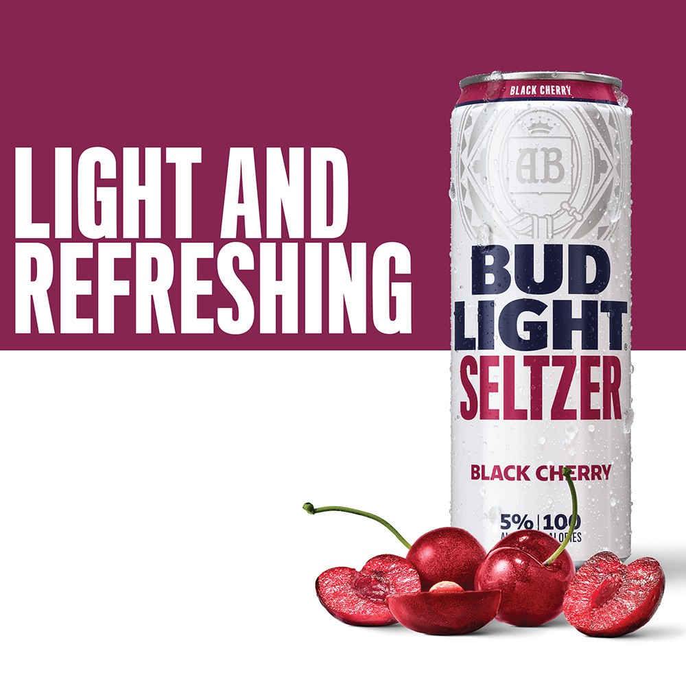 - 12 pack of 12 fl oz slim cans of Bud Light Seltzer Black Cherry