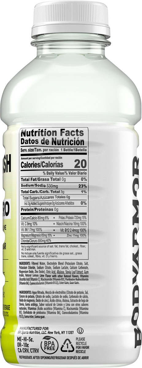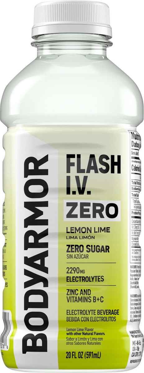 - Or dyesMade with coconut water and naturally flavored lemon lime for powerfully delicious taste20 fl oz bottle of BODYARMOR Flash I.V. Zero Sugar Lemon Lime sports drink for sustained hydration