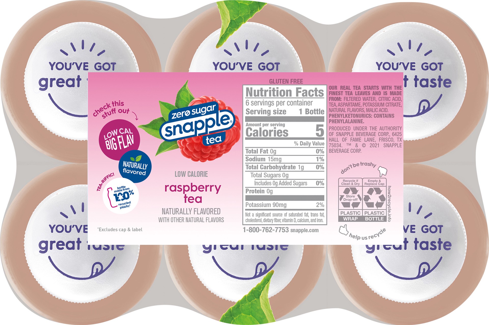 Here's the tea. The flavor of a ripe red raspberry hits different when it's mixed with refreshing and delicious iced tea. Big on flavor and low in calories, Snapple Zero Sugar Raspberry Tea is made fr…