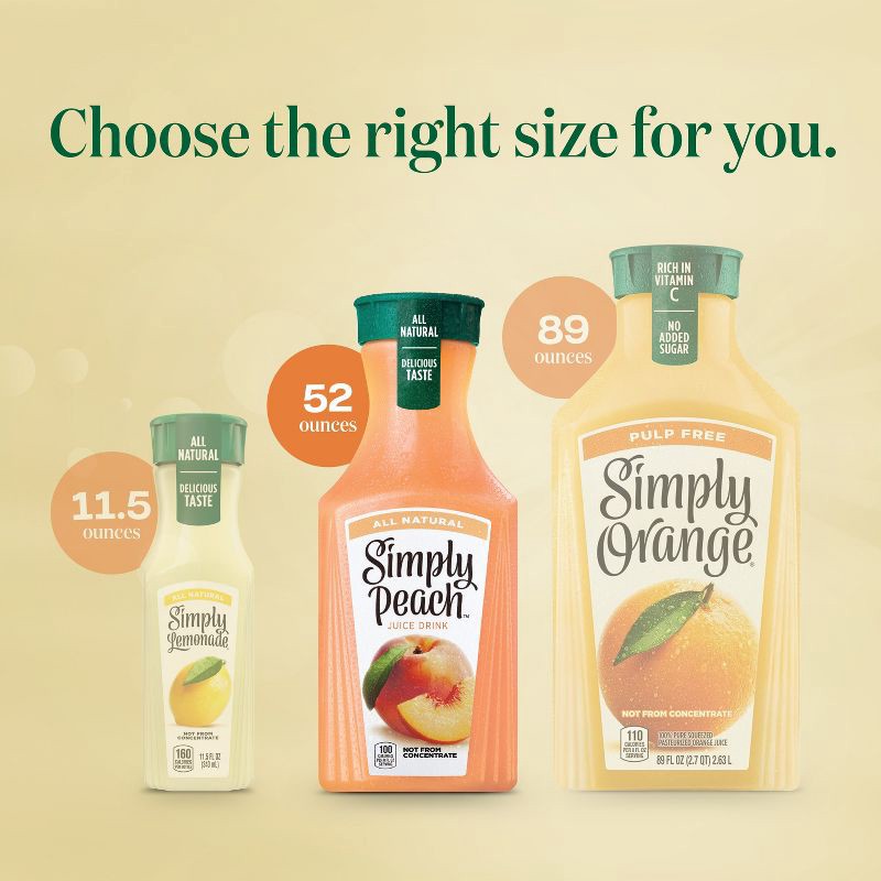 - 52 fl oz bottle of Simply Peach in a signature Simply carafe with distinctive cap and tear strip
