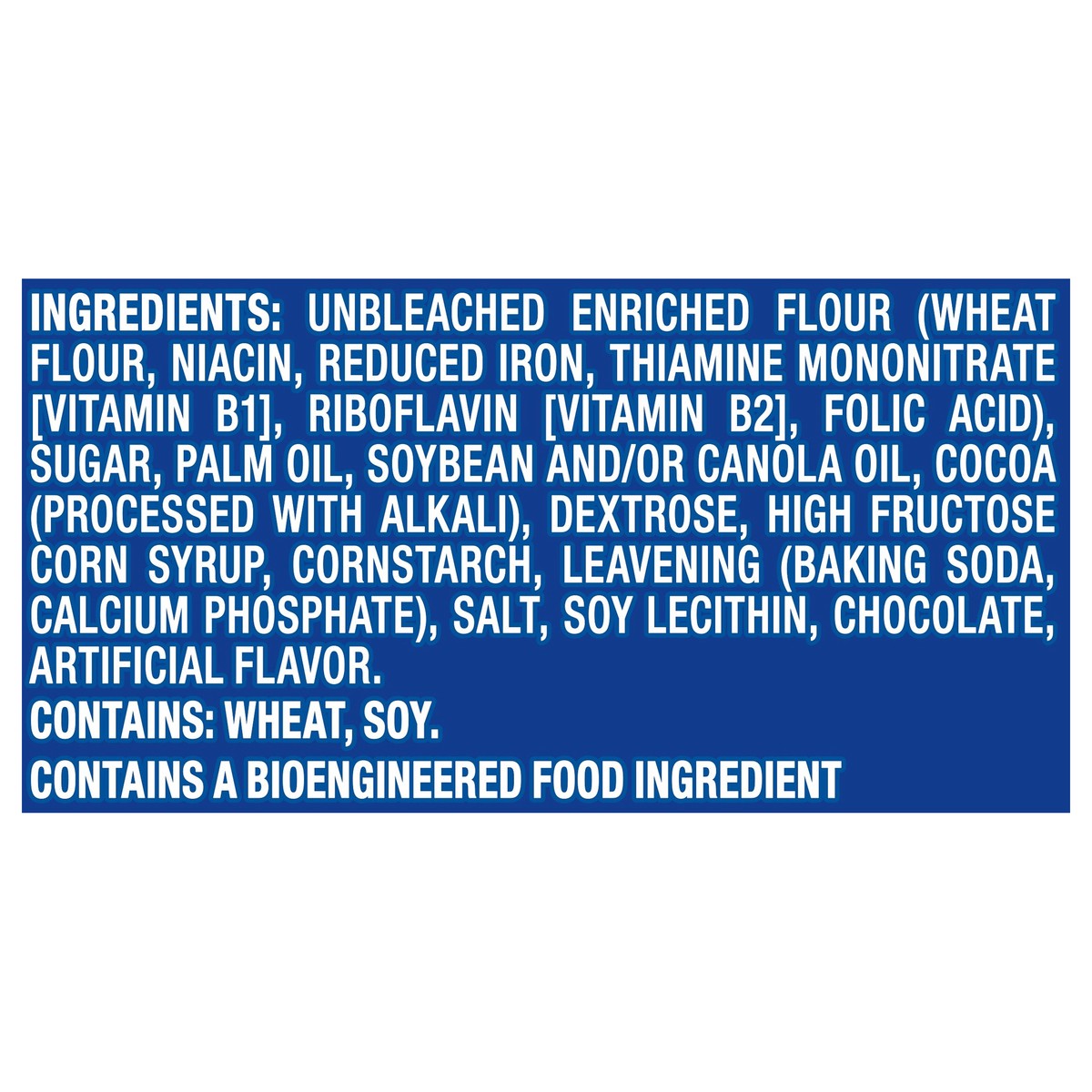 Unbleached Enriched Flour (Wheat Flour, Niacin, Reduced Iron, Thiamine Mononitrate [Vitamin B1], Riboflavin [Vitamin B2], Folic Acid), Sugar, Palm Oil, Soybean and/or Canola Oil, Cocoa (Processed with…