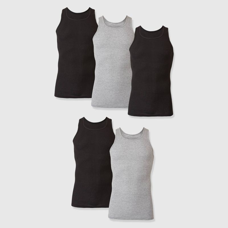 Hanes Premium Men's Comfort Tank Top Undershirt 5pk - Black/Gray XXL: Classic Fit, Tagless, Moisture Wicking, Breathable Fabric