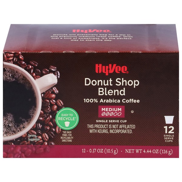 Hy-vee Medium Roast Donut Shop Blend 100% Arabica Coffee Single Serve Cups - 12 ct