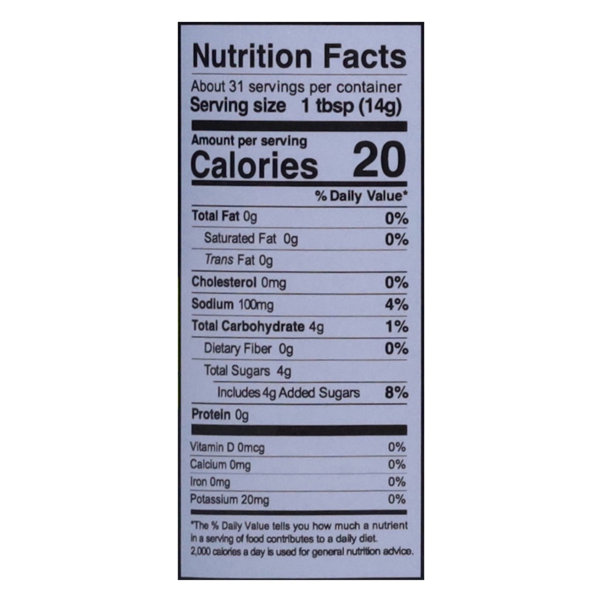 Water, Sugar, Apple Cider Vinegar, White Vinegar, Tomato Paste, Orange Juice Concentrate, Salt, Granulated Garlic, Flavor, Black Pepper, Lime Juice Concentrate, Xanthan Gum, Guar Gum, Dried Chiles, Gr…