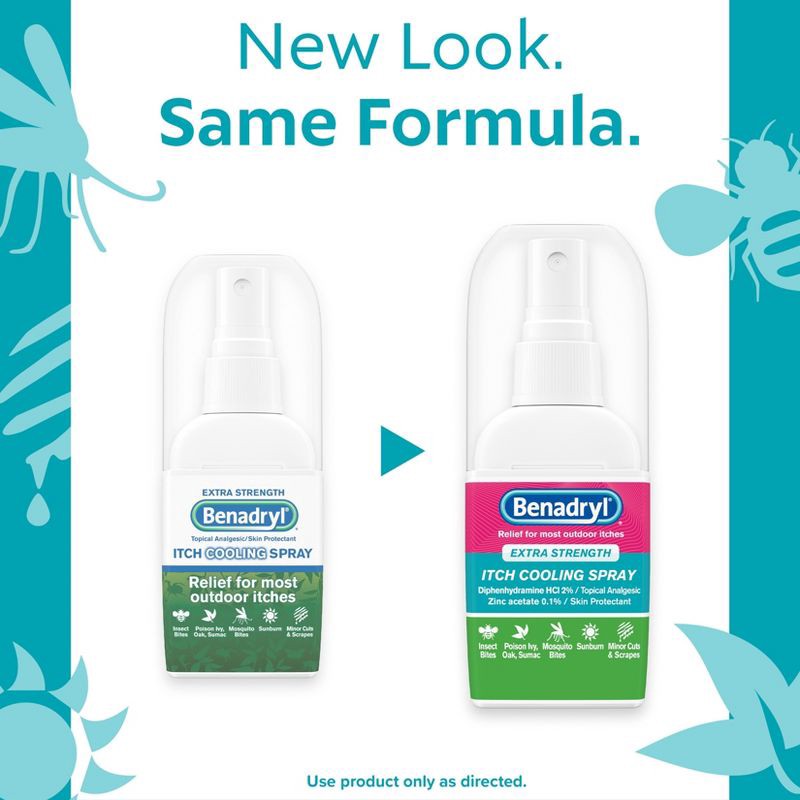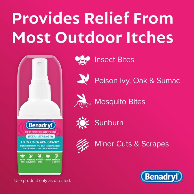 - Benadryl Extra Strength Itch Stopping Topical Cooling Spray for relief from minor pain and itching