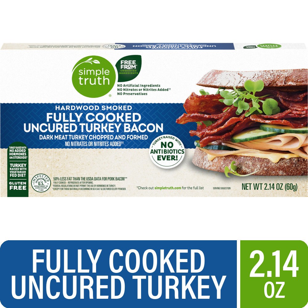 This fully cooked uncured hardwood smoked turkey bacon from simple truth is made from chopped and formed turkey thighs made from turkeys raised with no antibiotics or added hormones this turkey bacon …