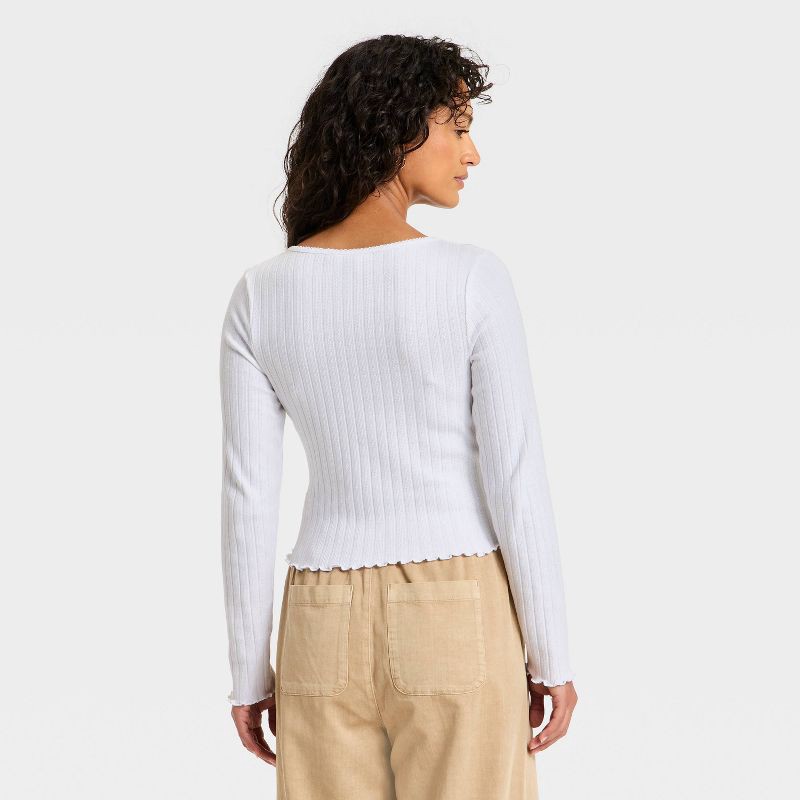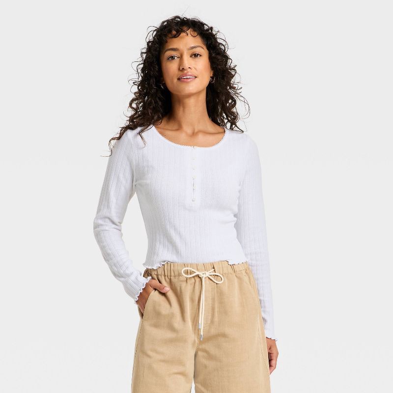 Women's Long Sleeve Pointelle Henley Shirt - Universal Thread™ White XS