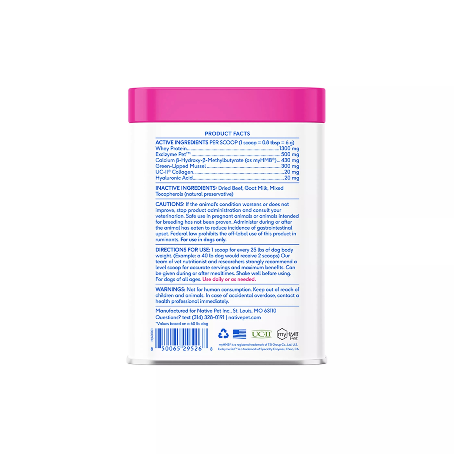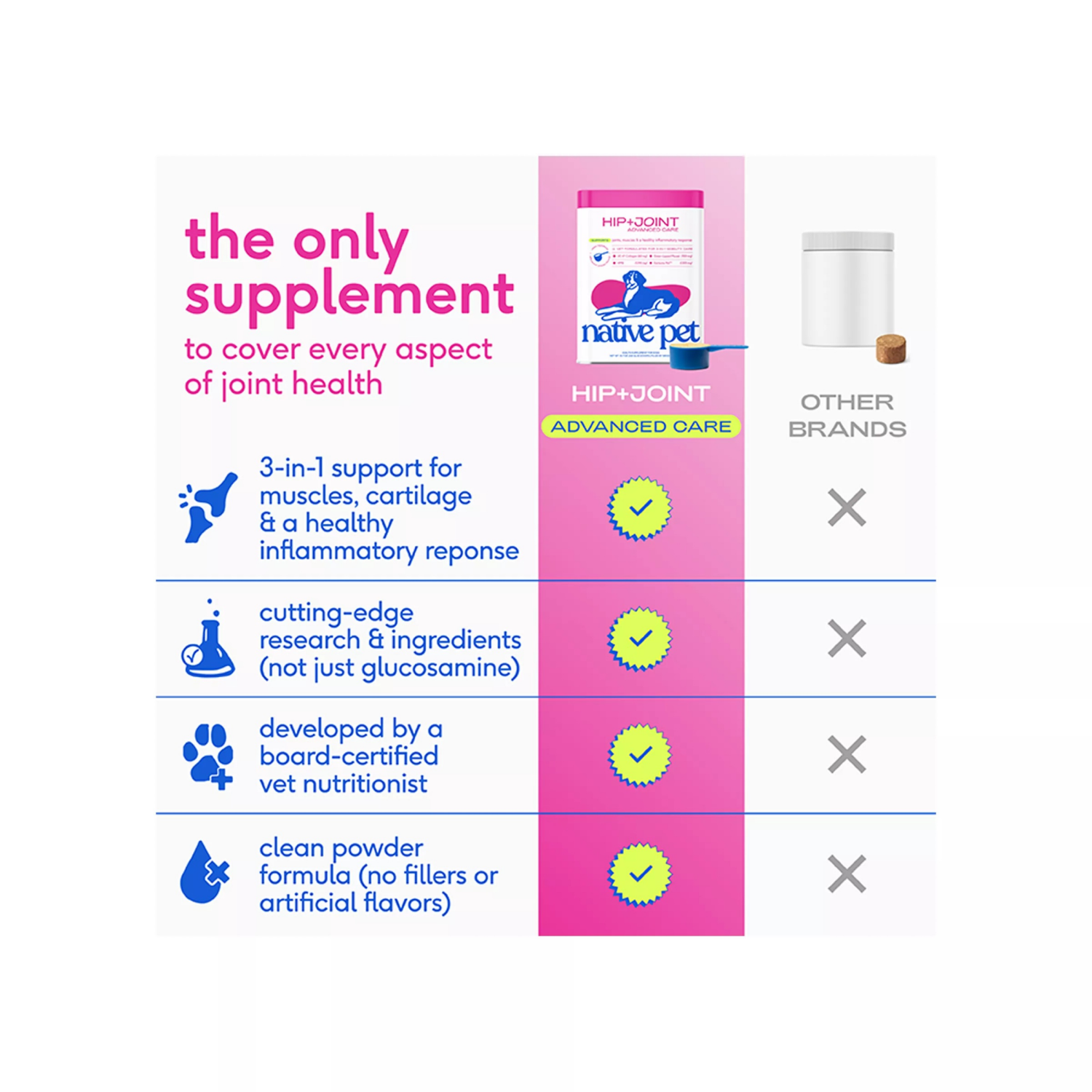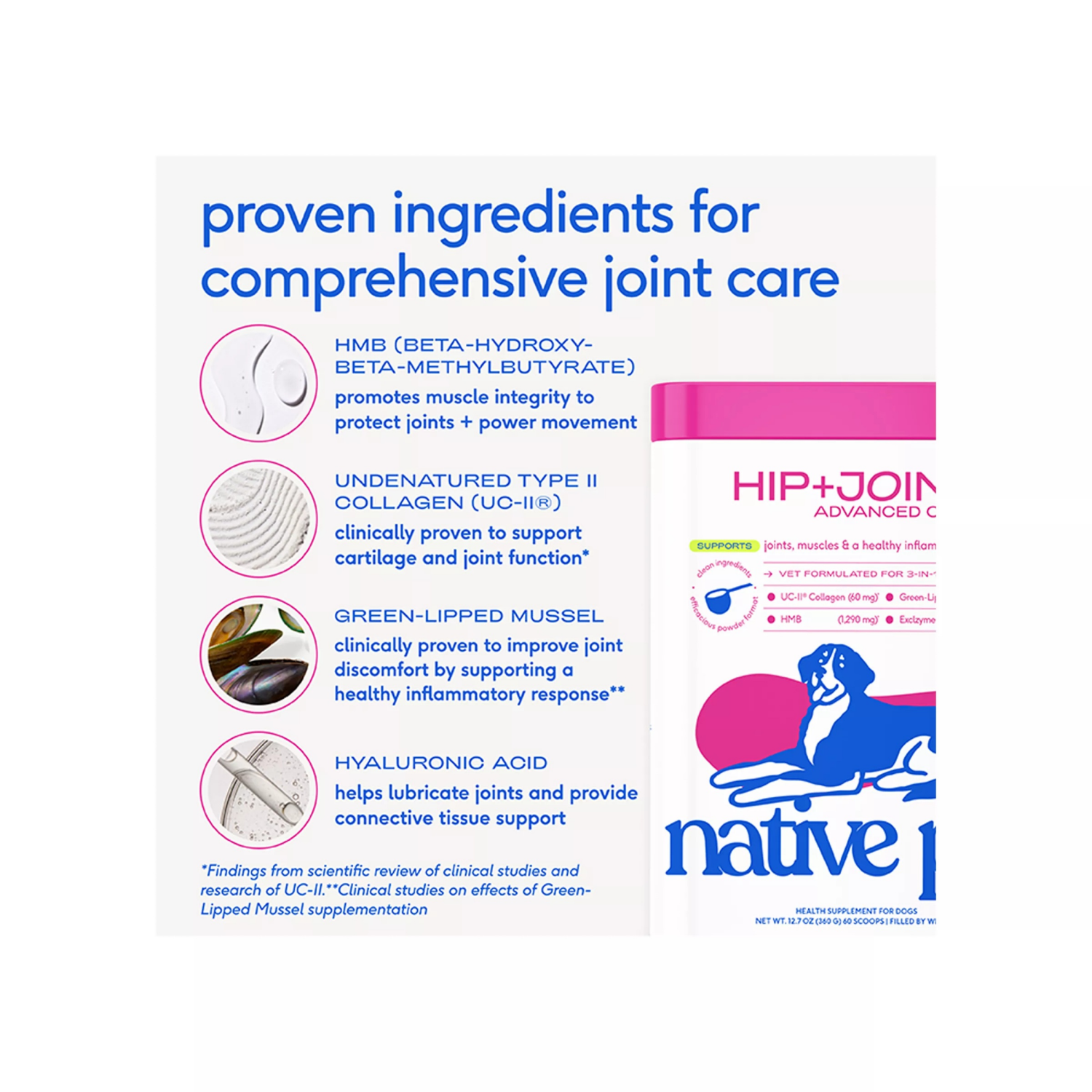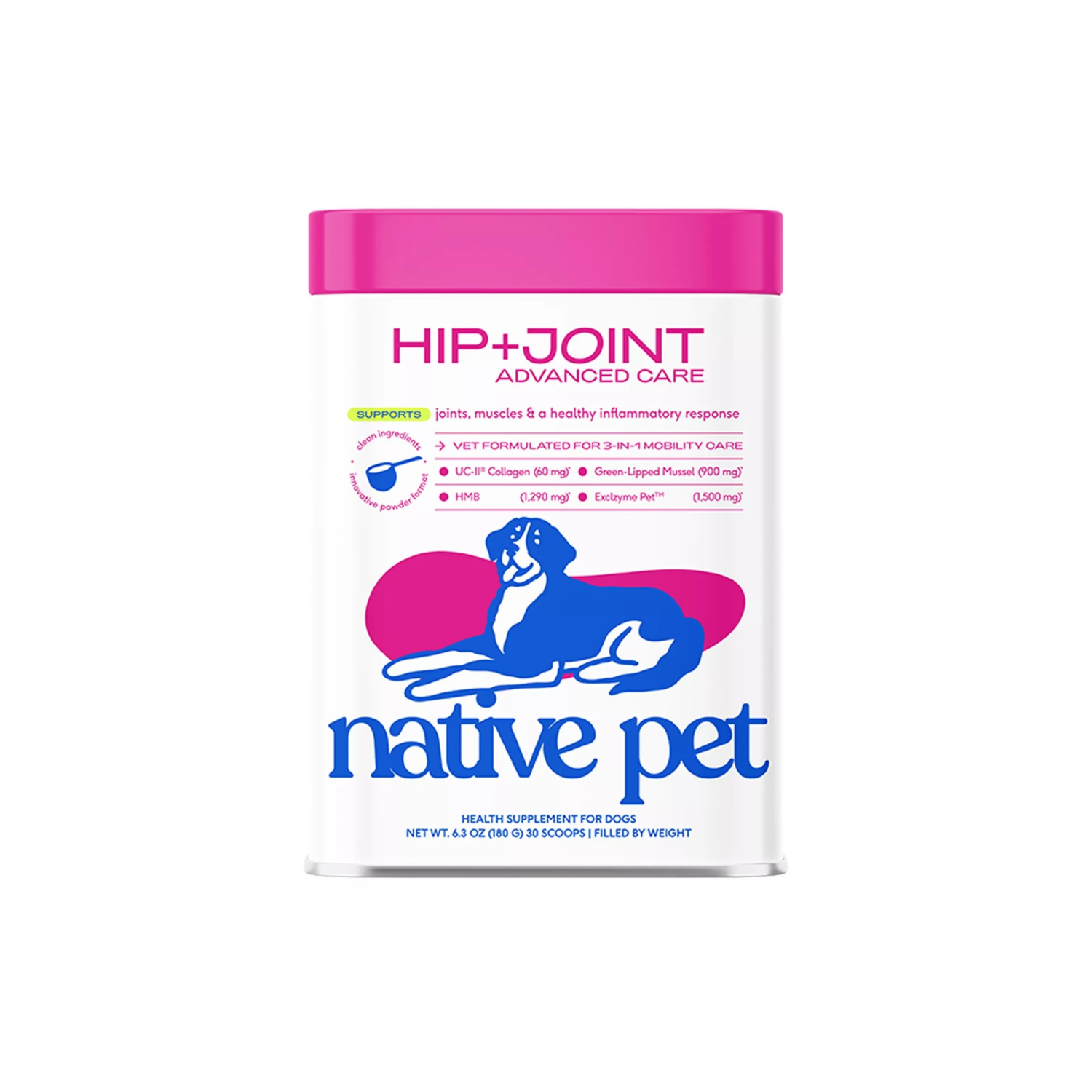 Native Pet Hip And Joint Advanced Care Powder Supplement For Dogs, 6.3 oz
