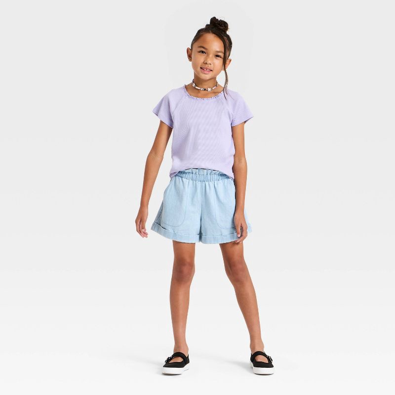 Add charming style to your kid's wardrobe with this Short-Sleeve Fitted Ribbed T-Shirt from Cat & Jack™. This ribbed T-shirt is made from a midweight cotton-polyester-spandex blend for all-day comfort…