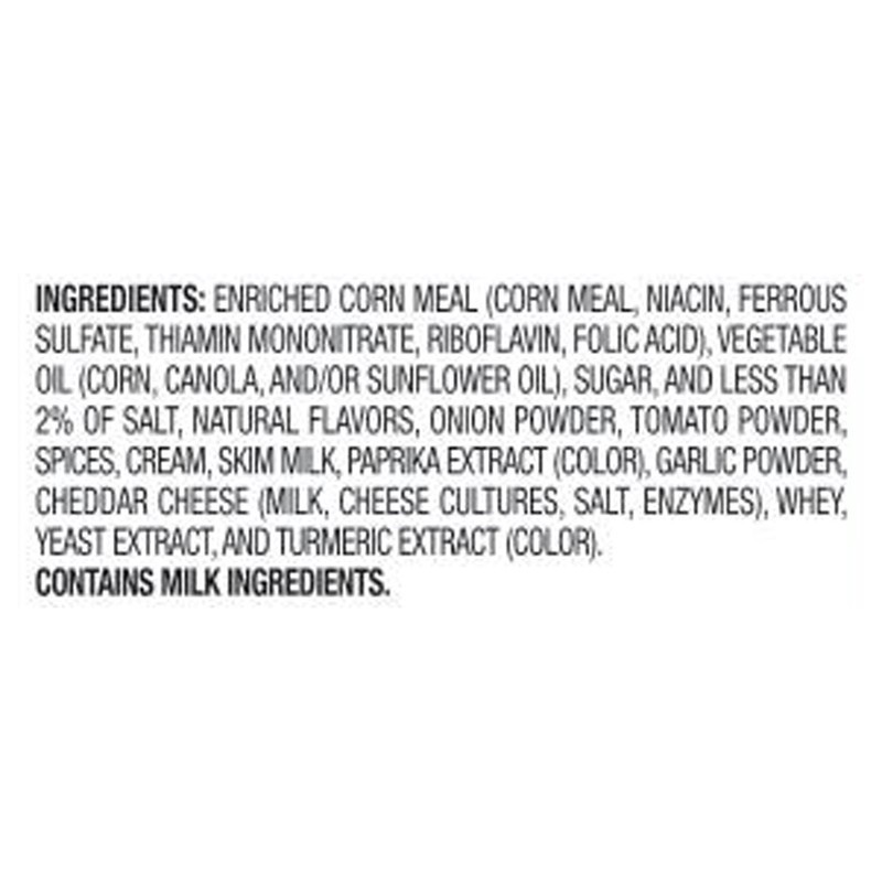 Enriched Corn Meal (Corn Meal, Niacin, Ferrous Sulfate, Thiamin Mononitrate, Riboflavin, Folic Acid), Vegetable Oil (Corn, Canola, And/Or Sunflower Oil), Sugar, And Less Than 2% Of Salt, Natural Flavo…