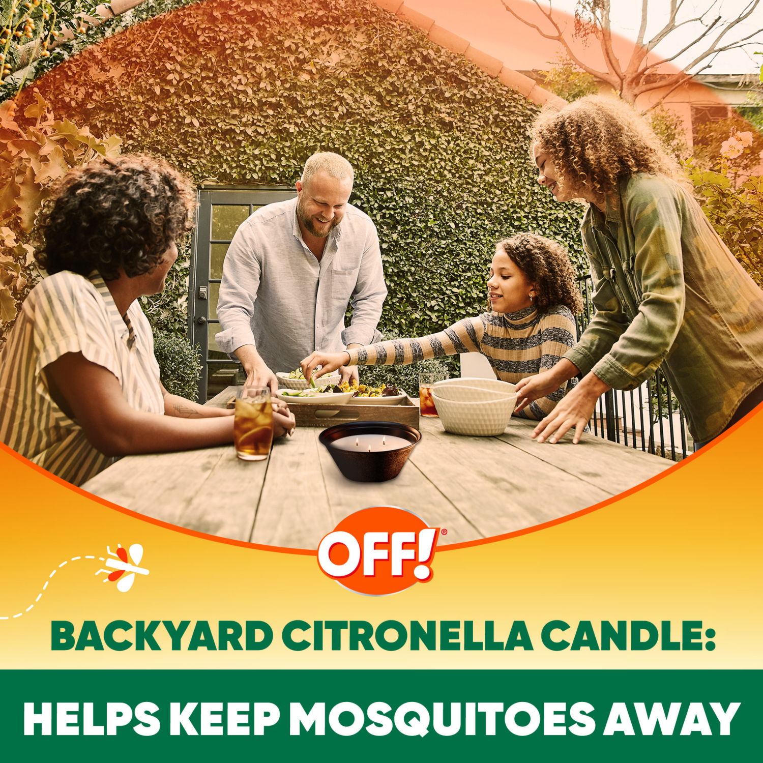 - OFF! triple wick mosquito candle enhances the ambiance of outdoor occasions with a gentle glow