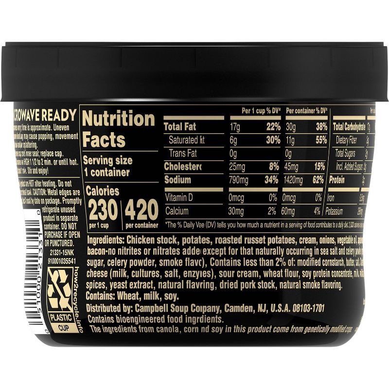 Campbell's Slow Kettle Style Baked Potato with Bacon Soup Microwaveable Bowl - 15.5oz