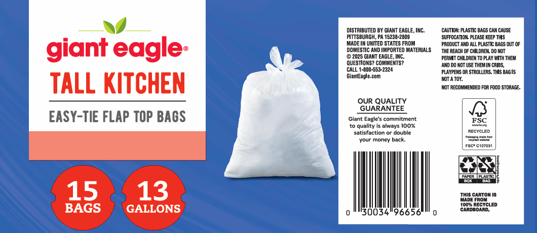 Giant Eagle Easy Tie Trash Bags, 13 Gallon, 15 Count