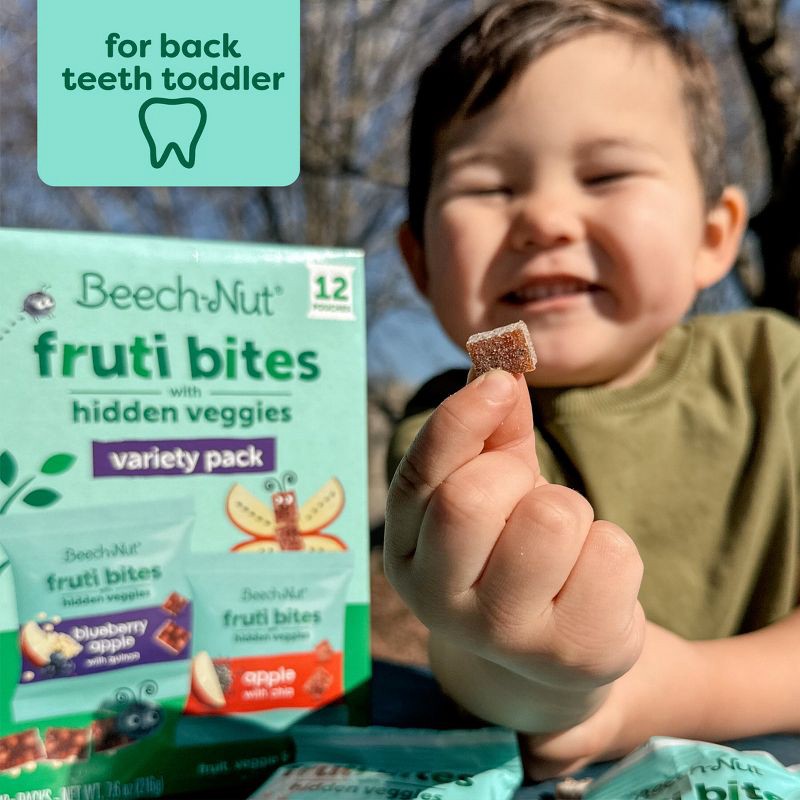 - Beech-Nut Fruti Bites are tasty, bite-sized fruit chews for toddlers made with fruit, veggies, quinoa and chia seeds