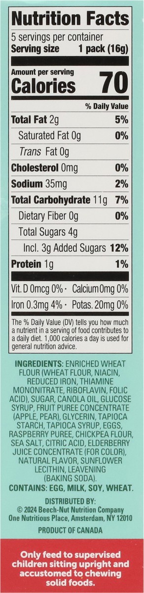 Beech-Nut Toddlers (12 Months+) Jammin' Pear Raspberry Waffles 5 - 16 g Packs
