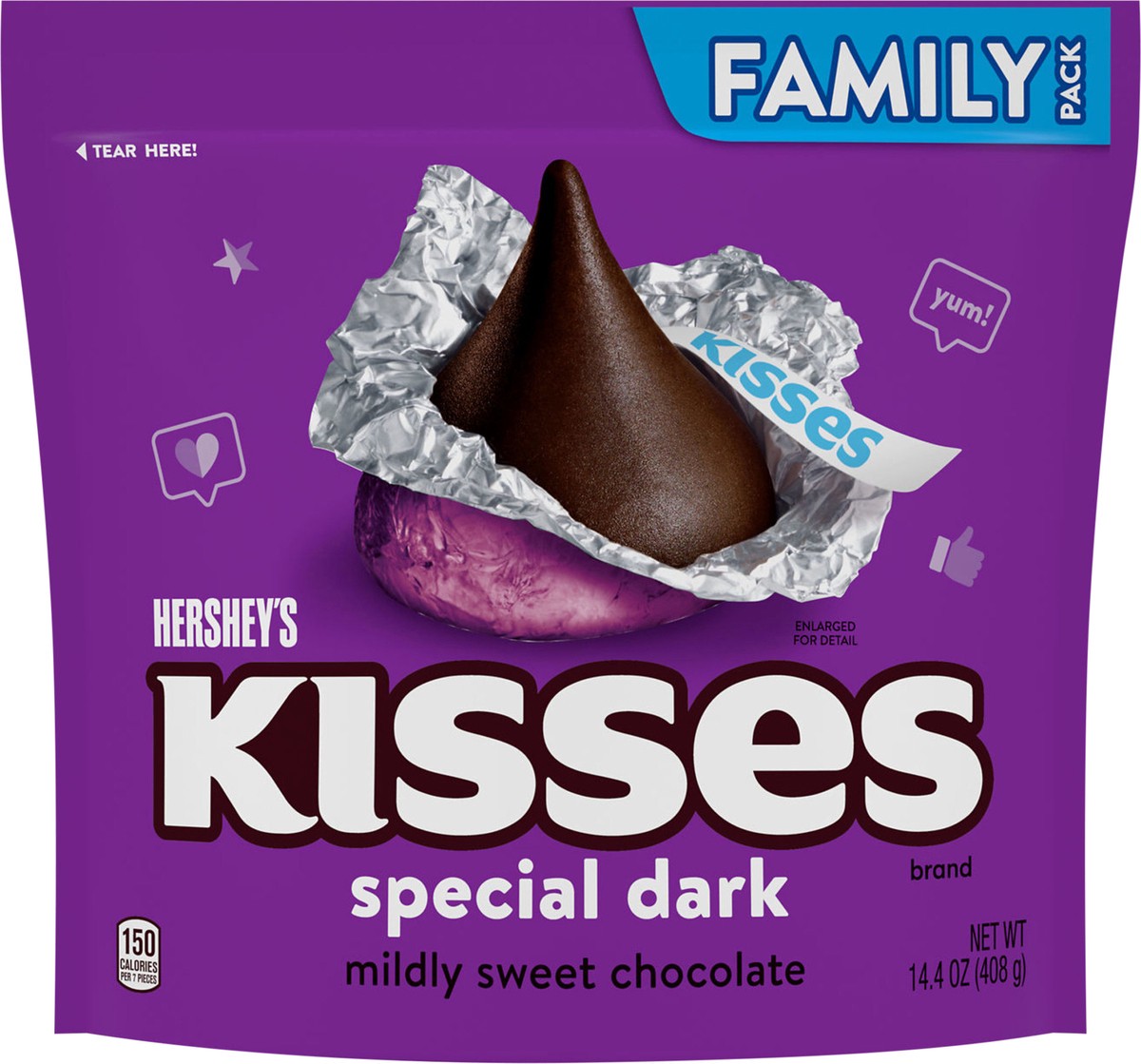 Hershey's Kisses Special Dark Mildly Sweet Chocolate Candy Family Pack, 14.4 oz