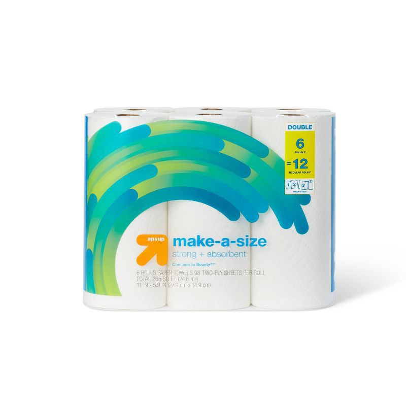 The Make-A-Size Paper Towels from up & up™ are essential for your cleaning needs at home. Sturdy and absorbent, these paper towel rolls handle the toughest of stains in one single swipe, making cleanu…