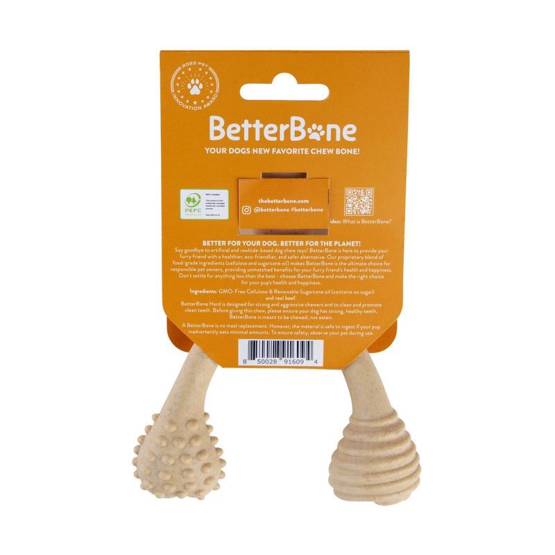 - BetterBone HARD is the ultimate natural & durable chew toy for strong, tough, & aggressive chewers! Crafted from all-natural, food-grade ingredients, it is designed to promote health and dental hygiene with its super durable natural, food-grade, GMO-free ingredients. Our unique teeth-cleaning ends reach tricky, hard-to-clean areas. Pair this with our natural, non-toxic, hypoallergenic, and splinter-resistant composition.