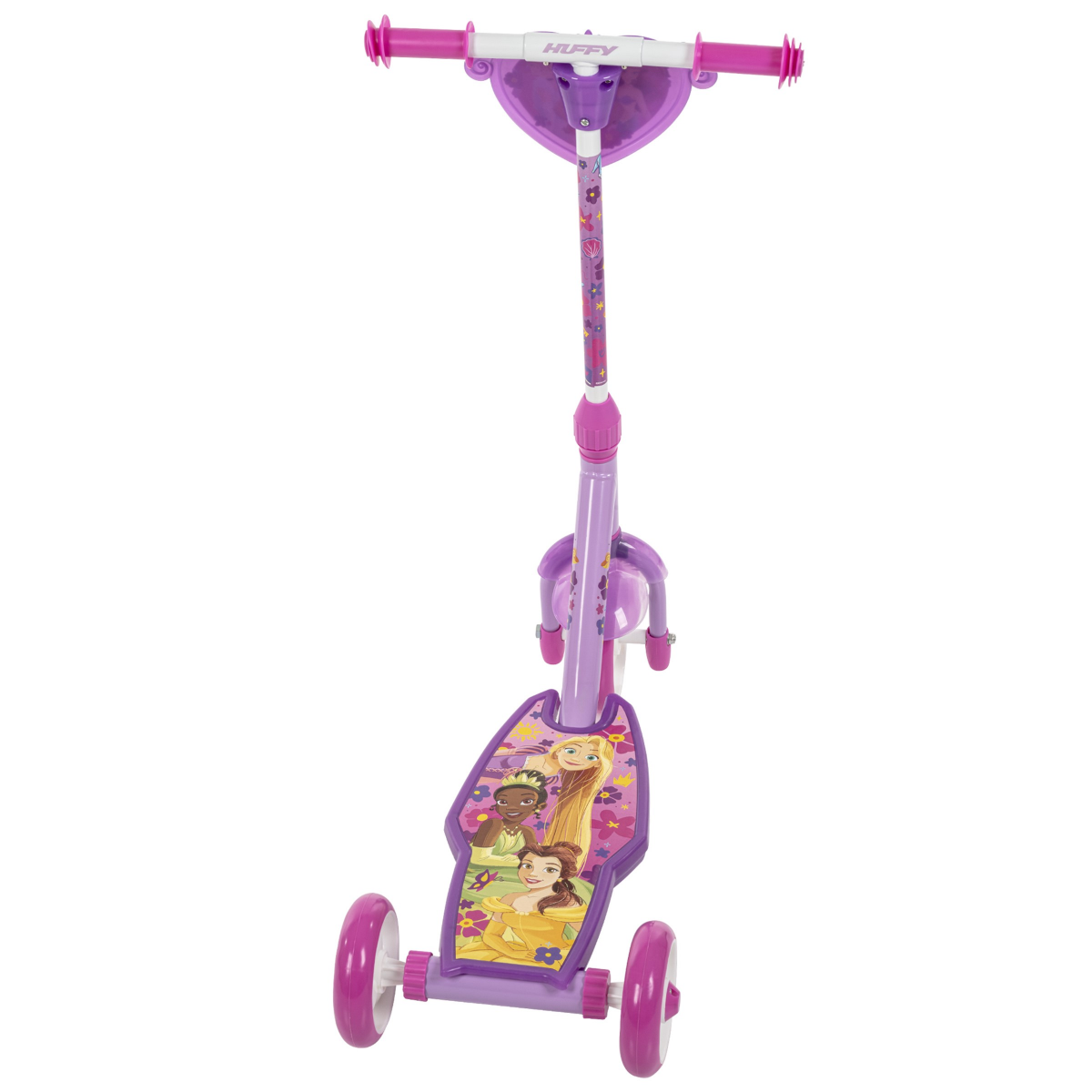 This Disney Princess 3-wheel light-up scooter from Huffy features beautiful graphics featuring Disney princesses on the deck and handlebar plaque. These fun graphics are highlighted by bright LED ligh…