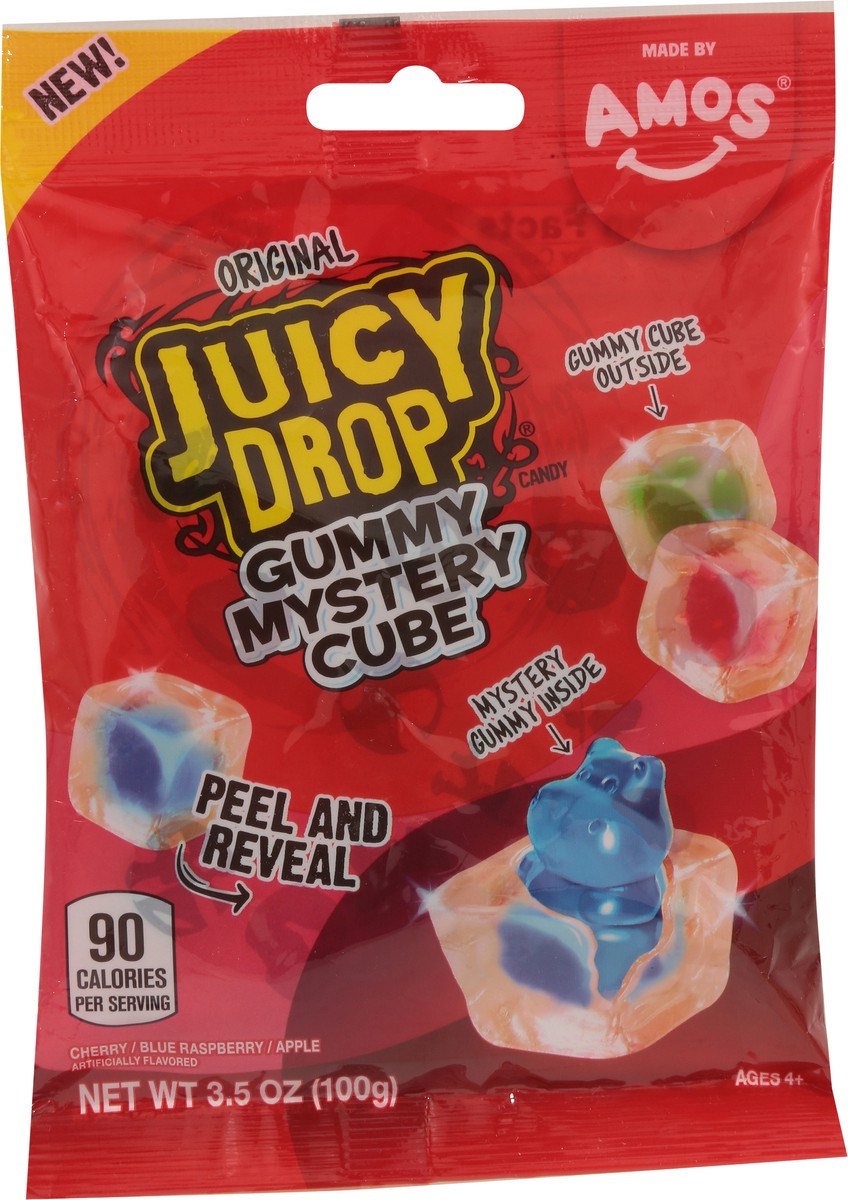 Bazooka Juicy Drop Gummy Mystery Cube Original 3.5 oz Peg Bag