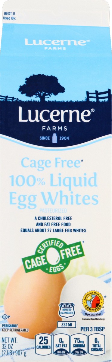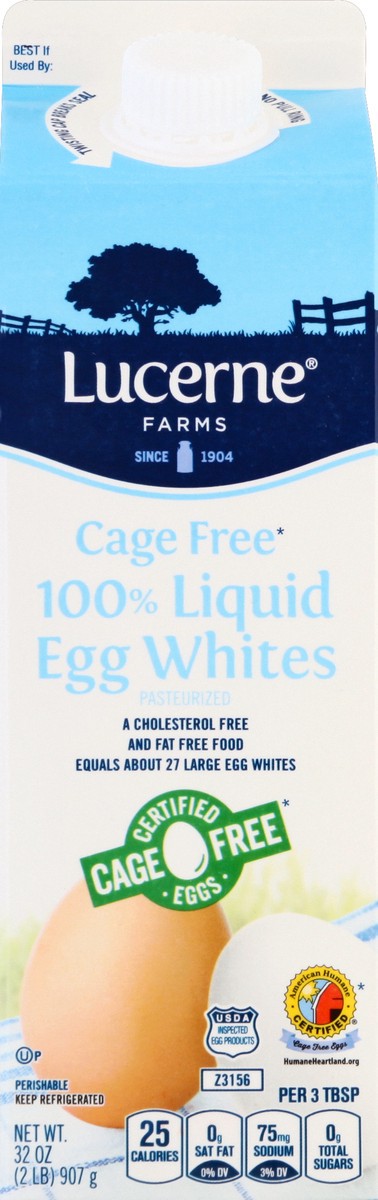 Since 1904. From Lucerne to Your Family: Lucerne Cage Free Egg Whites are made from 100% egg whites. Egg Whites are a fat free, cholesterol free food. Lucerne Egg Whites are great for scrambled eggs, …