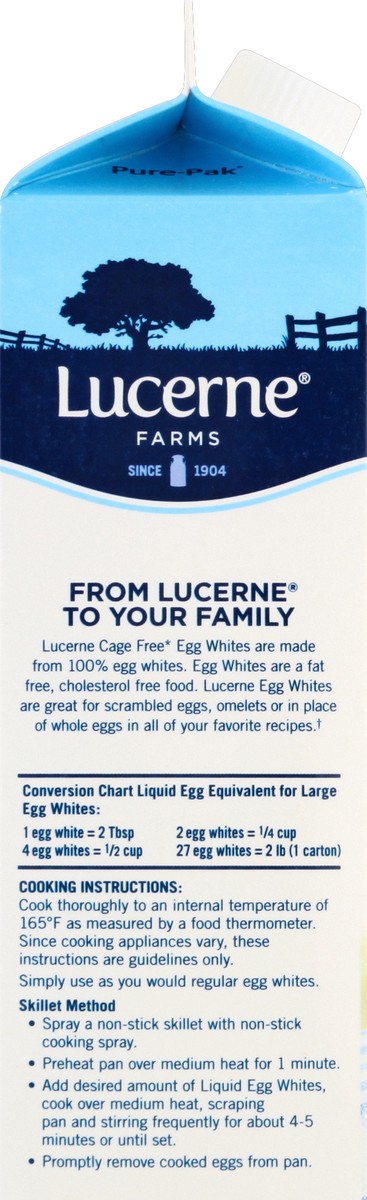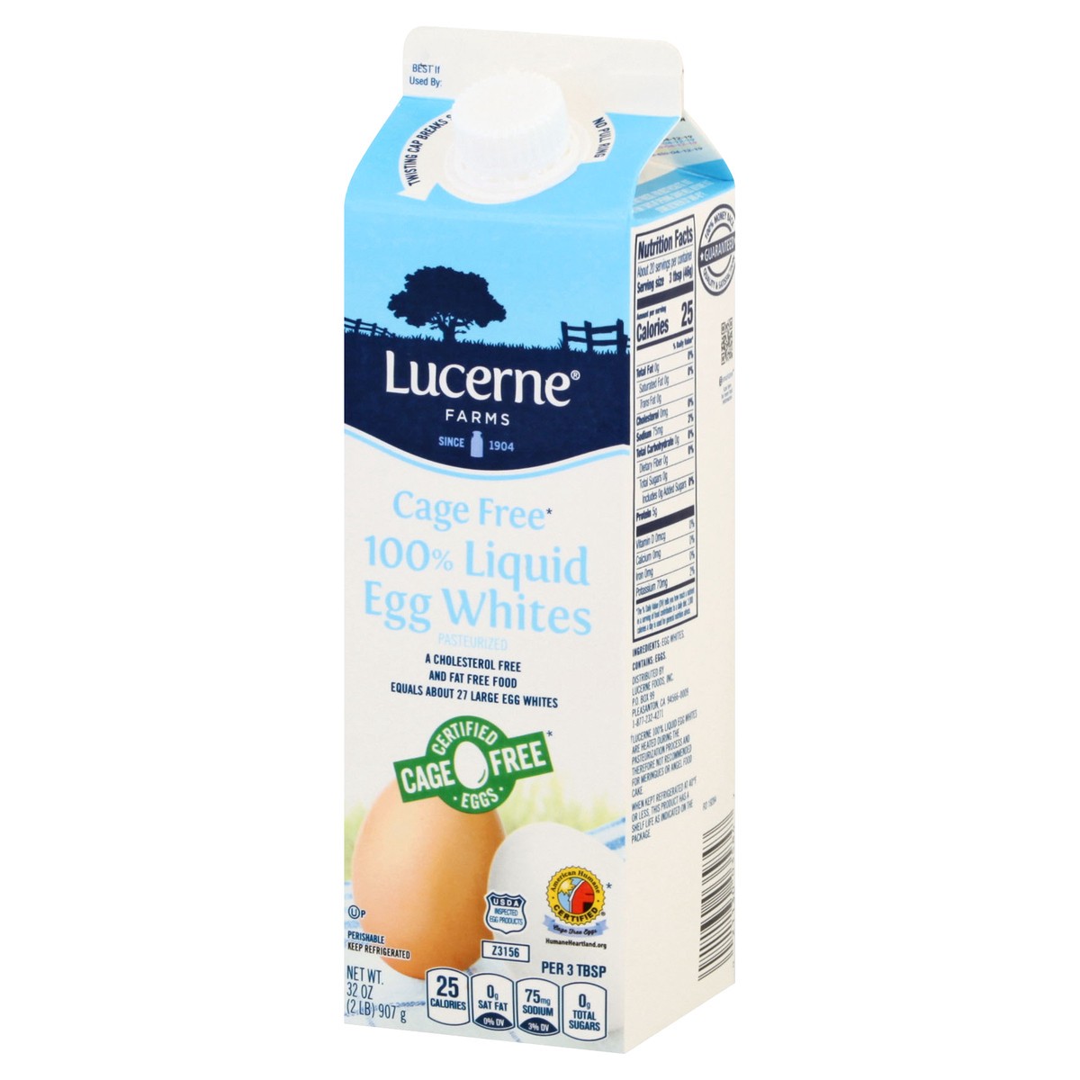 Since 1904. From Lucerne to Your Family: Lucerne Cage Free Egg Whites are made from 100% egg whites. Egg Whites are a fat free, cholesterol free food. Lucerne Egg Whites are great for scrambled eggs, …