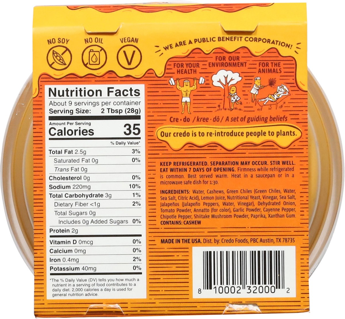 Credo Original Medium Cashew Queso. Made from 100 plants. Yep, no animal products