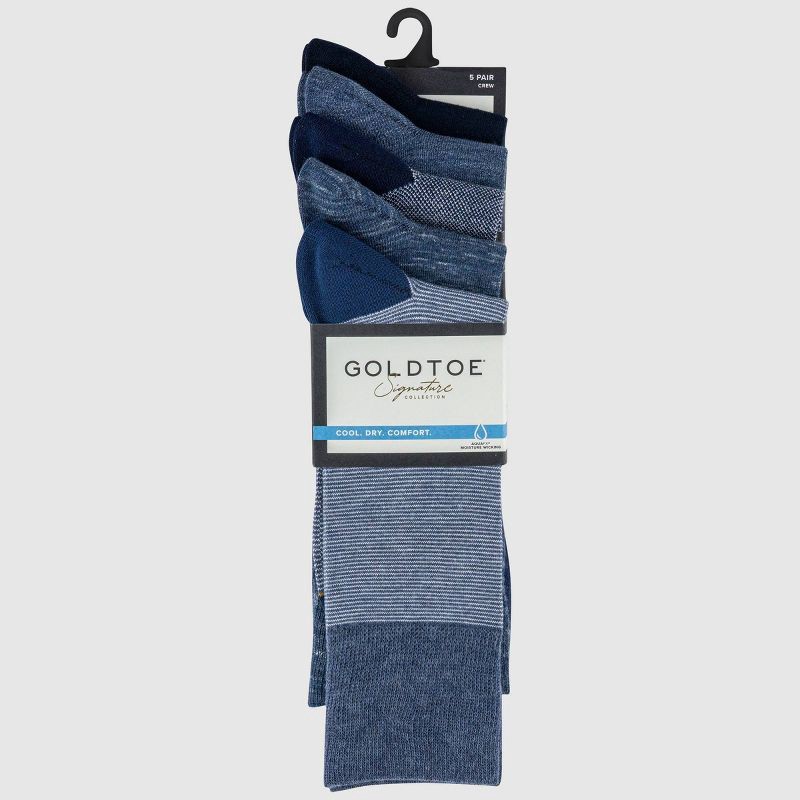GOLDTOE Signature Collection Signature Gold by GOLDTOE Men's Comfort Top Flat Knit Crew Socks 5pk - Blue 6-12.5