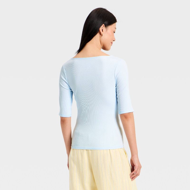 Women's Modern Ribbed Elbow Sleeve Top - A New Day™ Light Blue L