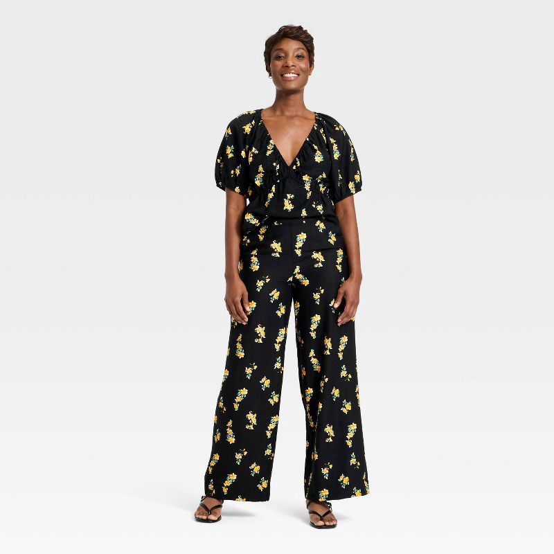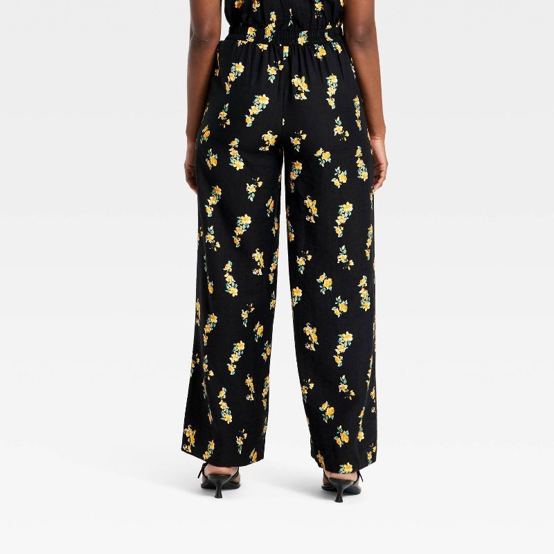 Women's Slub Crepe Printed Pants - A New Day™ Black Floral M
