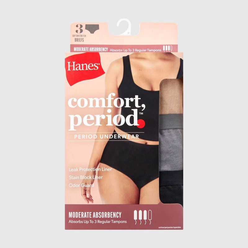 GO ANYWHERE, DO ANYTHING PROTECTIONWith Hanes Comfort, Period.™ protection, you can go anywhere and do anything without worrying about leaks, odor, or bulk. The absorptive stain block liner in these b…