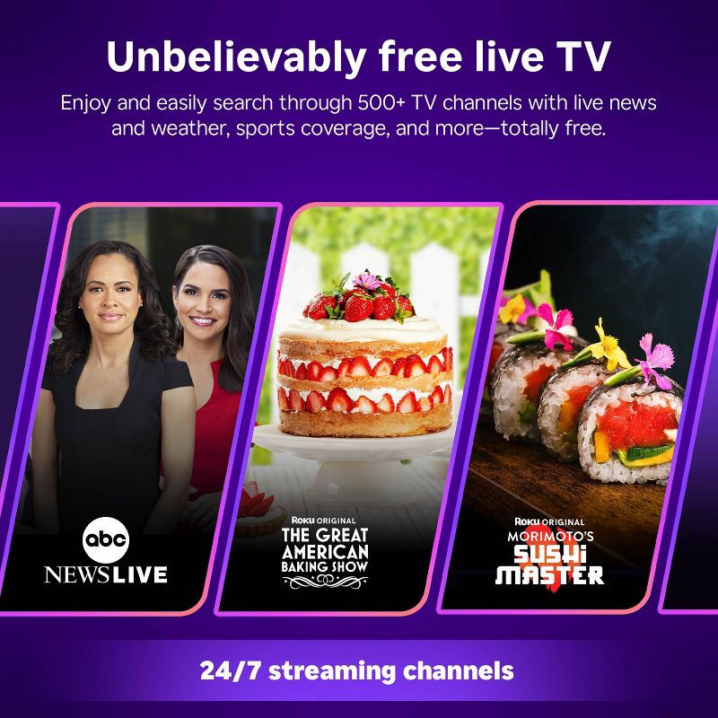 - Endless free TV: Enjoy the best selection of free entertainment with 400+ live TV streaming apps, award-winning Roku® Originals, in-season shows, hit movies, kids' TV, and more.