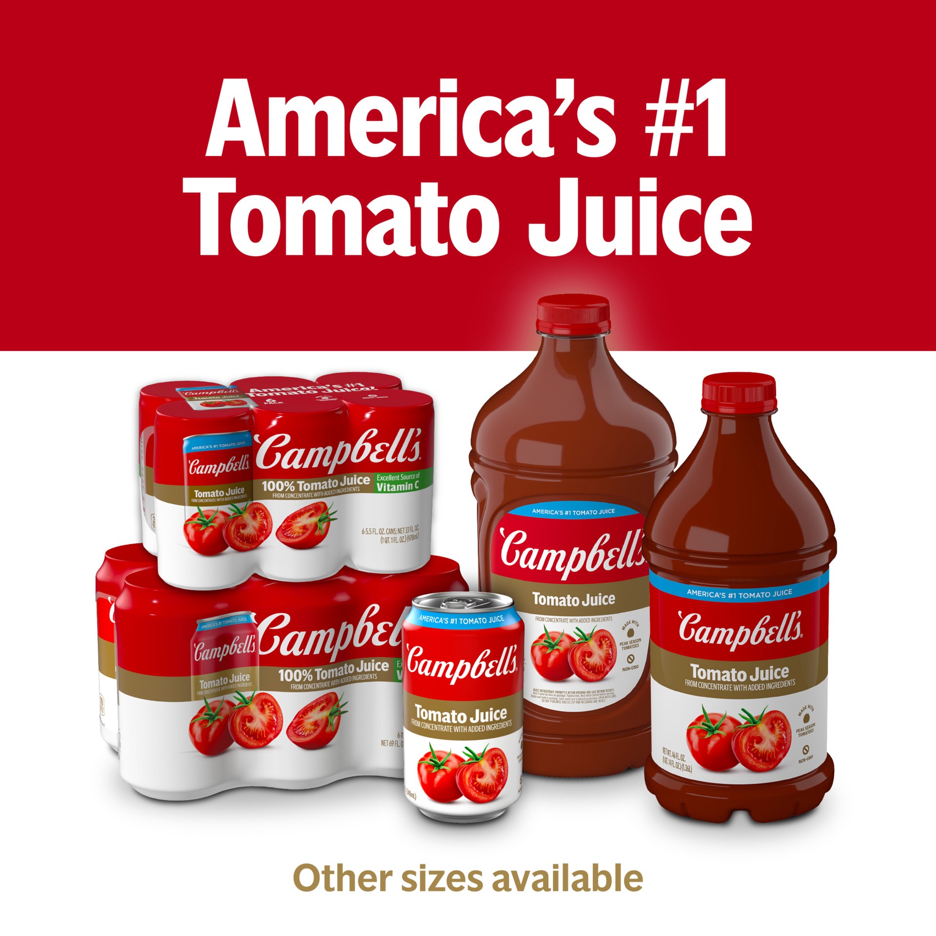 Campbell's 100% Tomato Juice is the rich, delicious vegetable juice that brings the sun-ripened taste of peak-season tomatoes to every sip. Made with tomatoes picked at their best and no added sugars,…