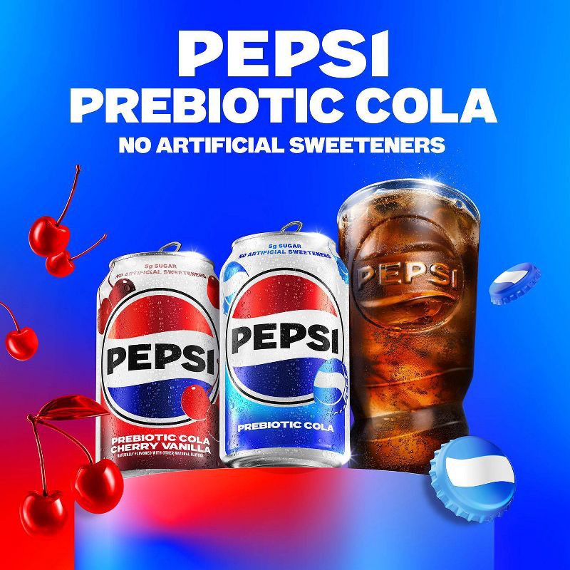 - Includes 8 (12oz) cans of PEPSI® Prebiotic Cola.