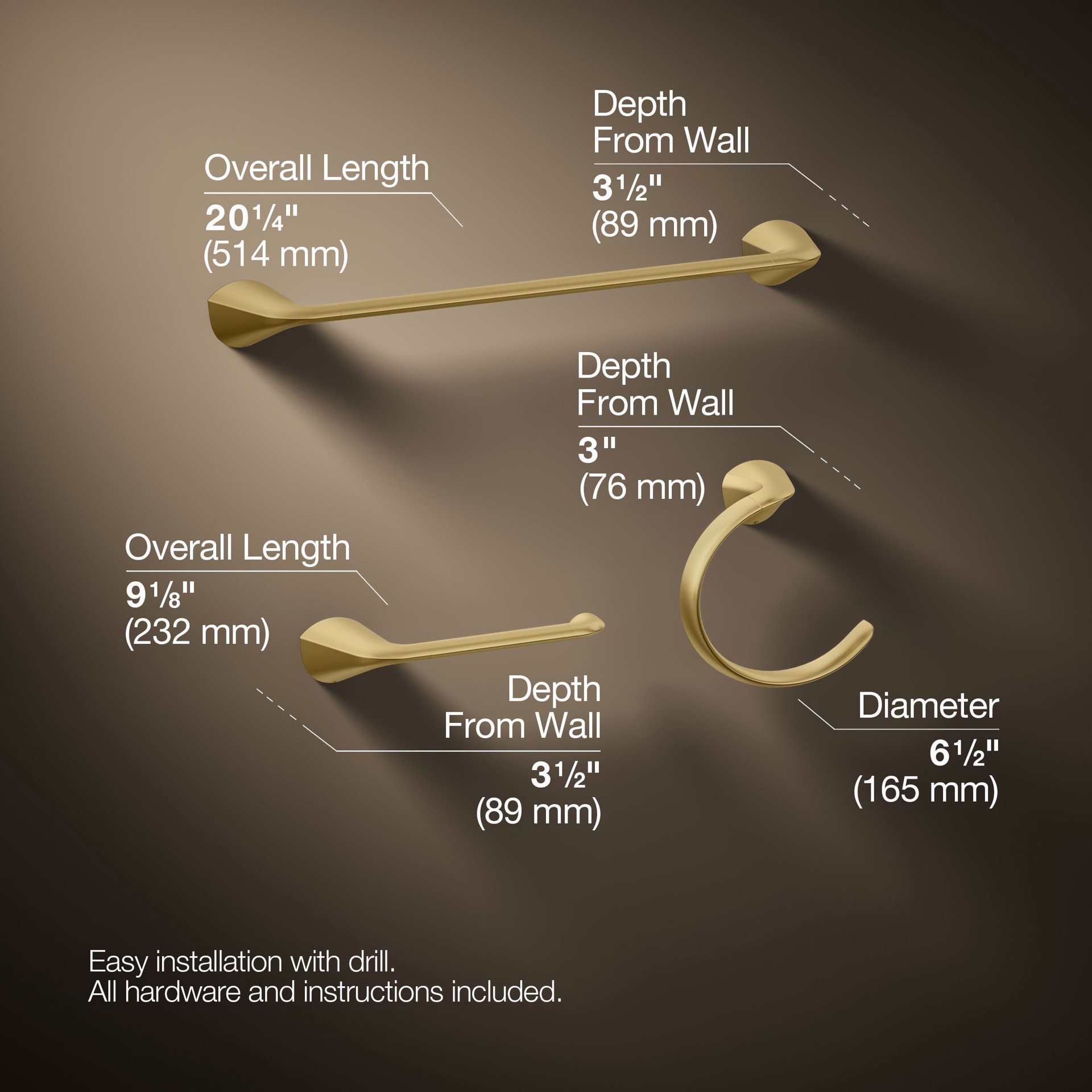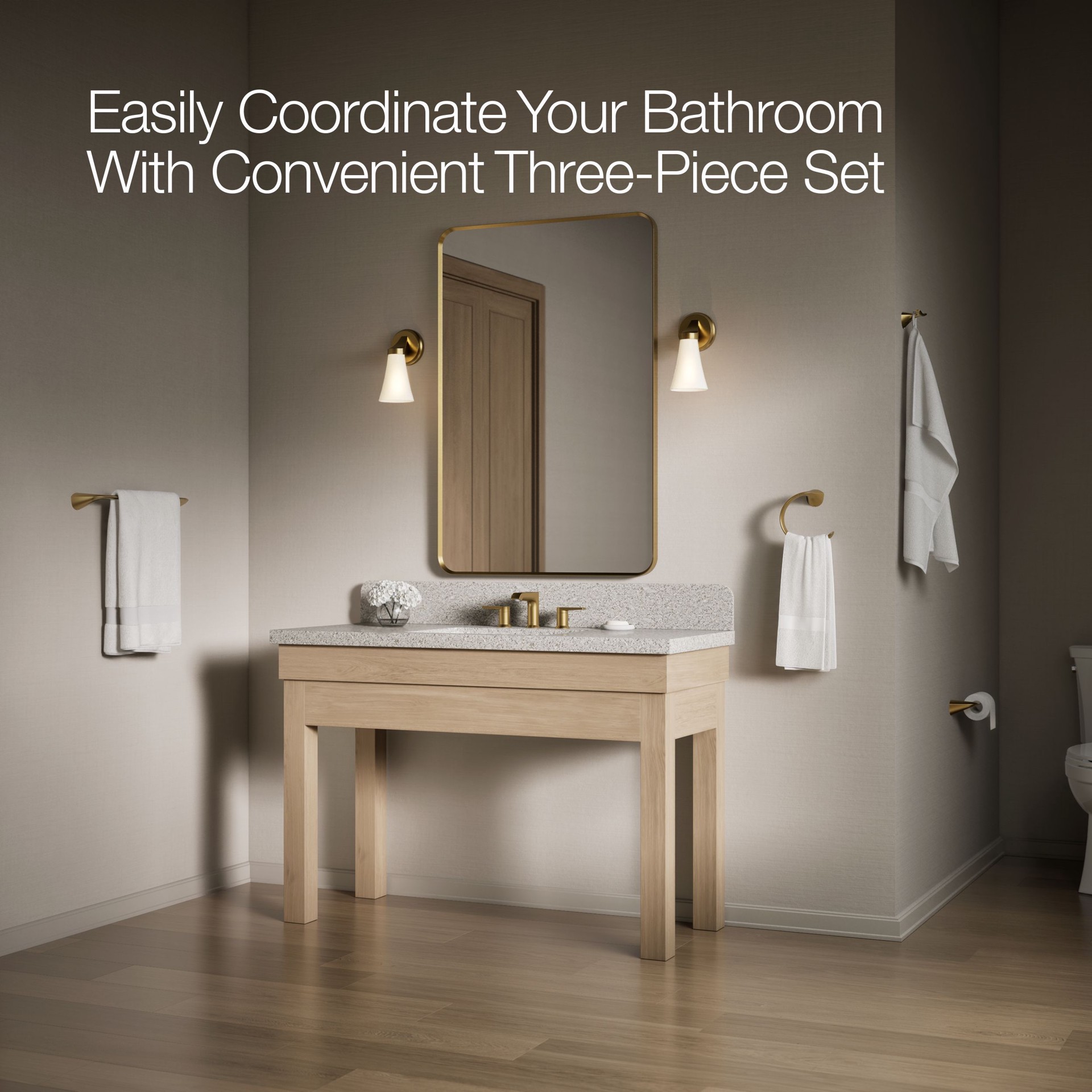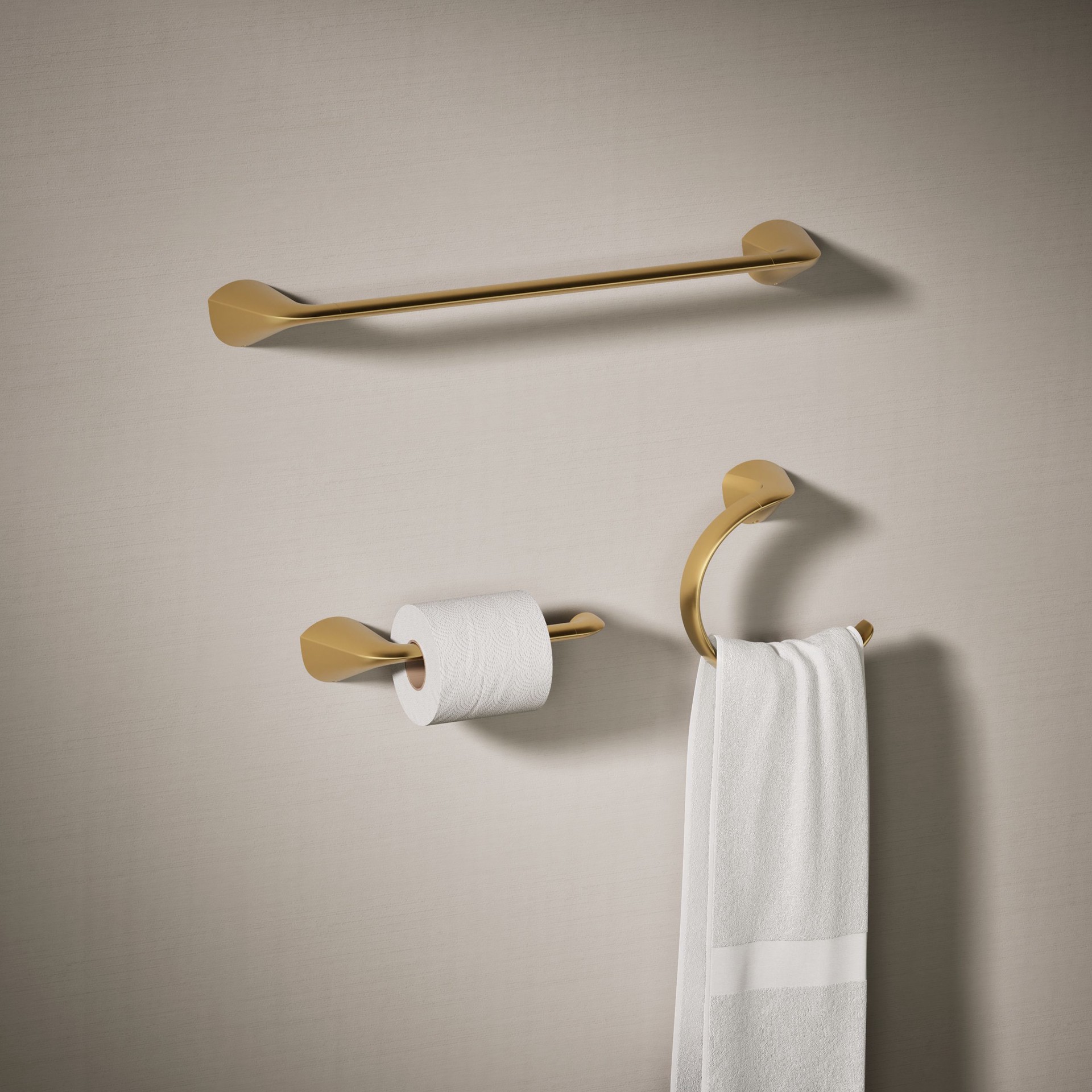 KOHLER 3 -Piece Avail Vibrant Brushed Moderne Brass Decorative Bathroom Hardware Set Towel Bar, Toilet Paper Holder, Towel Ring Included