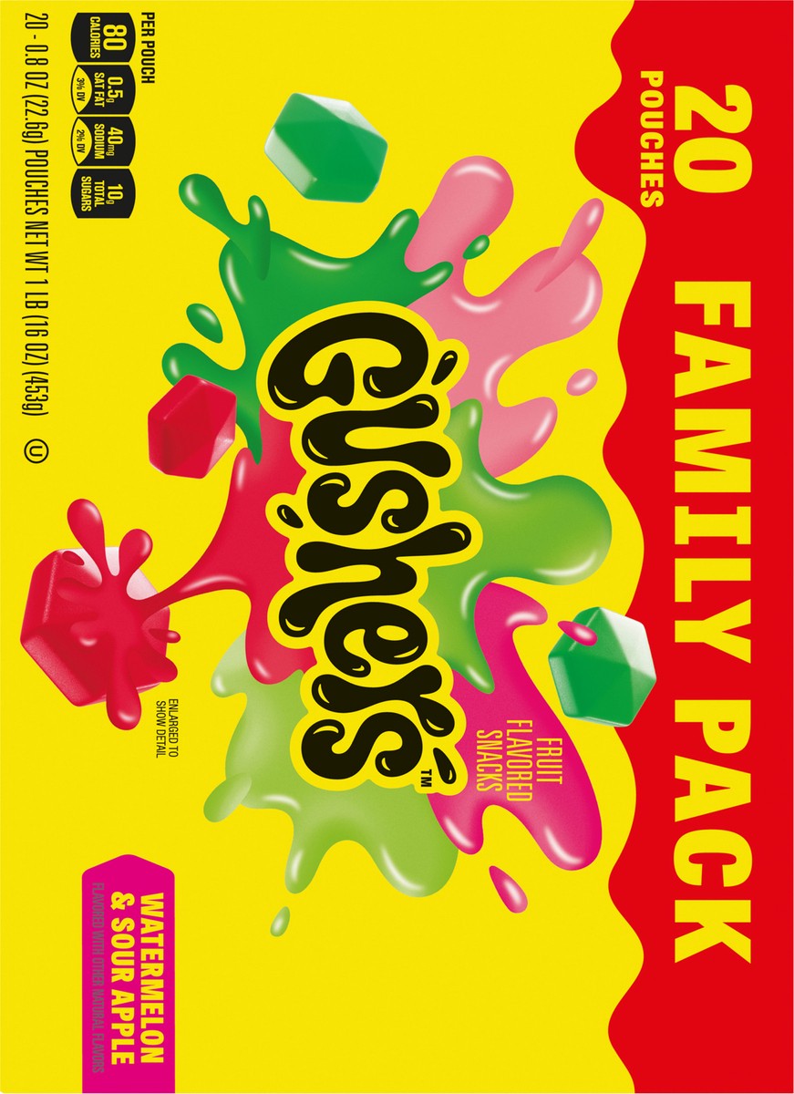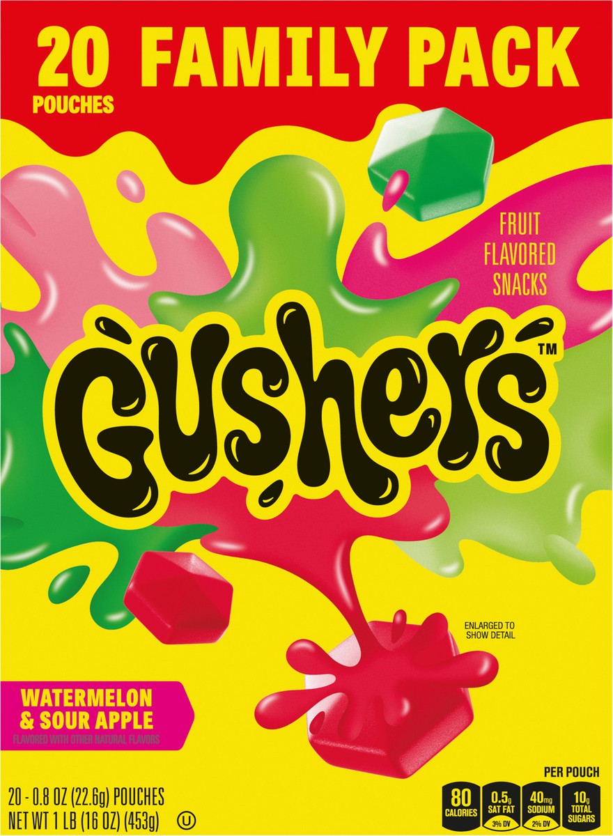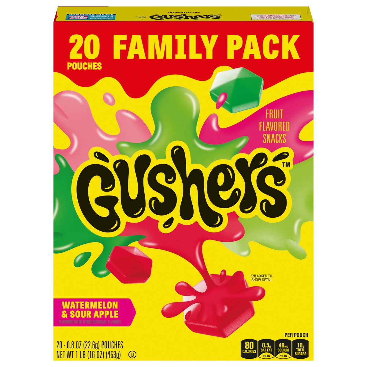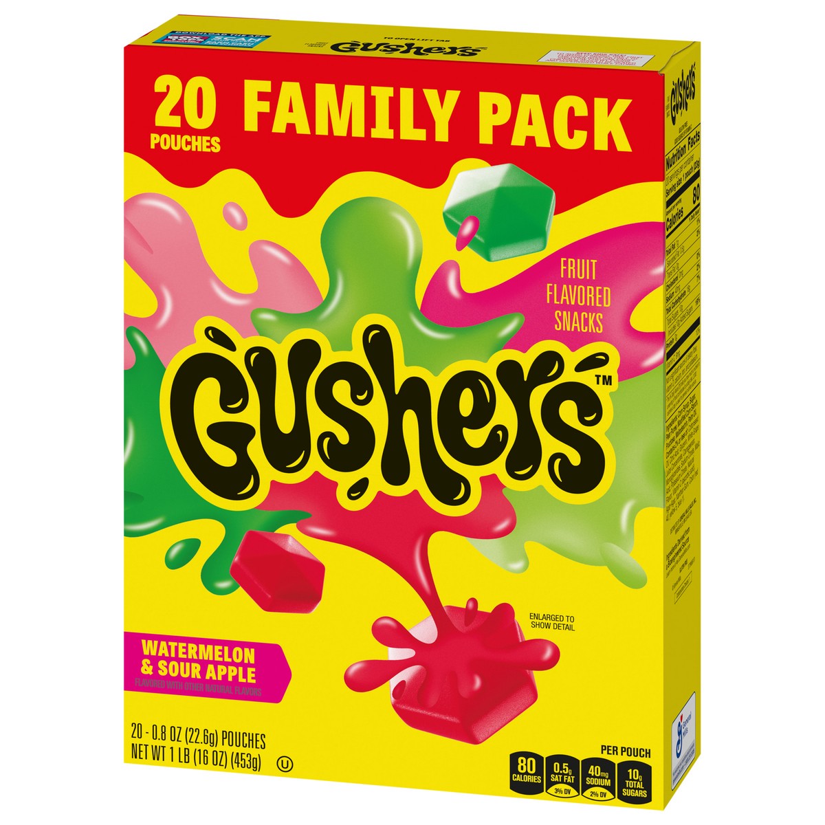 Fruit Gushers Fruit Flavored Snacks, Halloween Treats, Watermelon and Sour Apple Flavor, Family Pack, 20 Ct, 16 oz