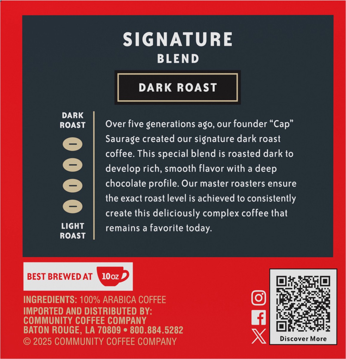 The blend that started it all. Roasted to deep, dark perfection, this signature Dark Roast has a rich, bold flavor that has been a family tradition for four generations. Made from only 100% select Ara…