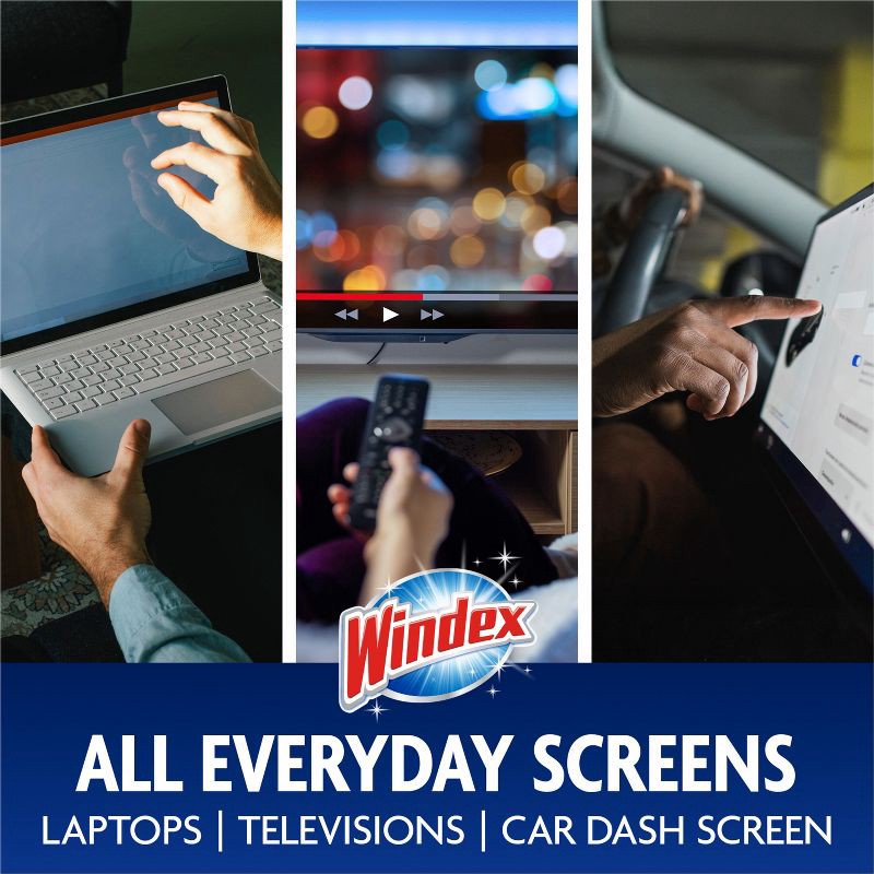 - Windex Electronic Wipes gently clean and leave a streak-free shine