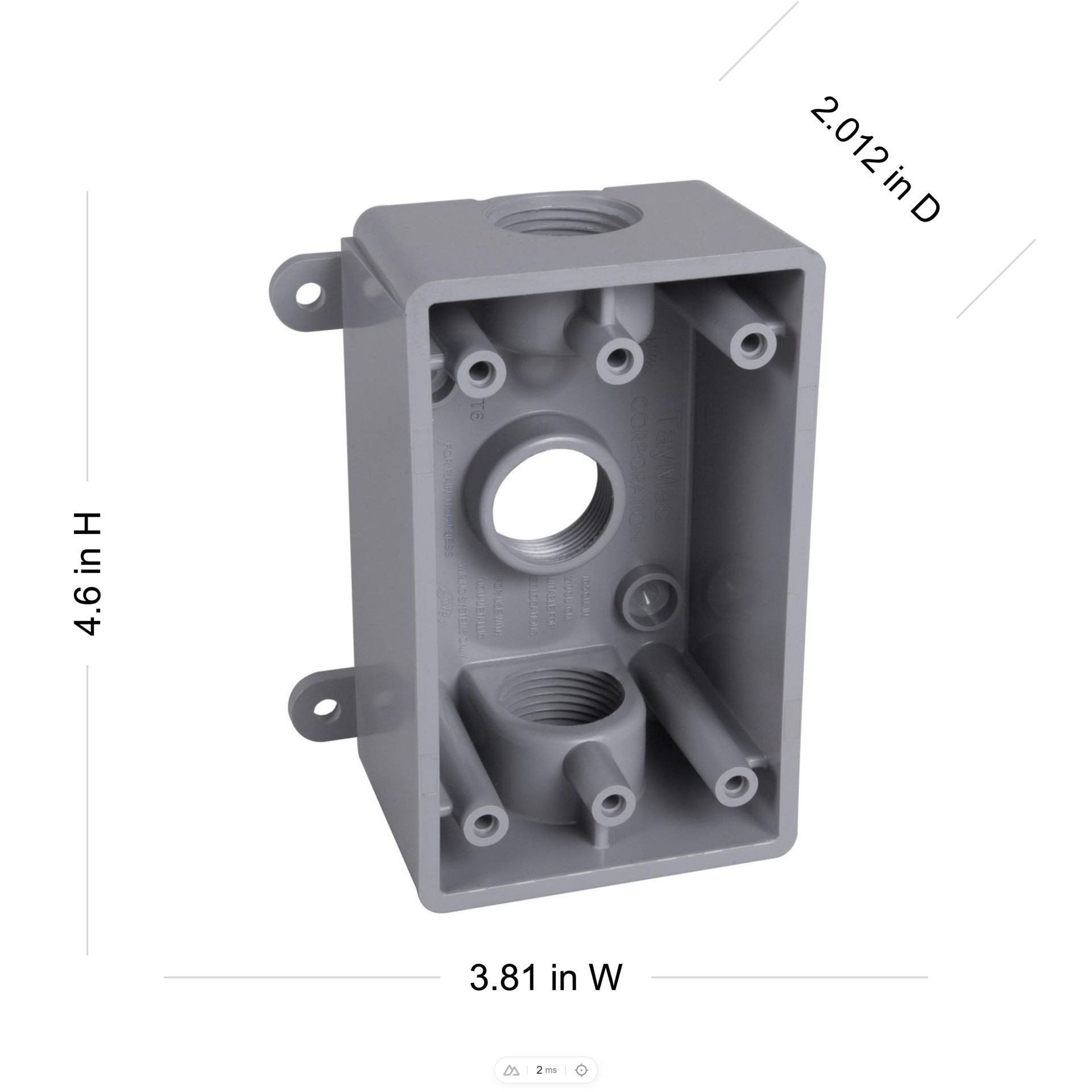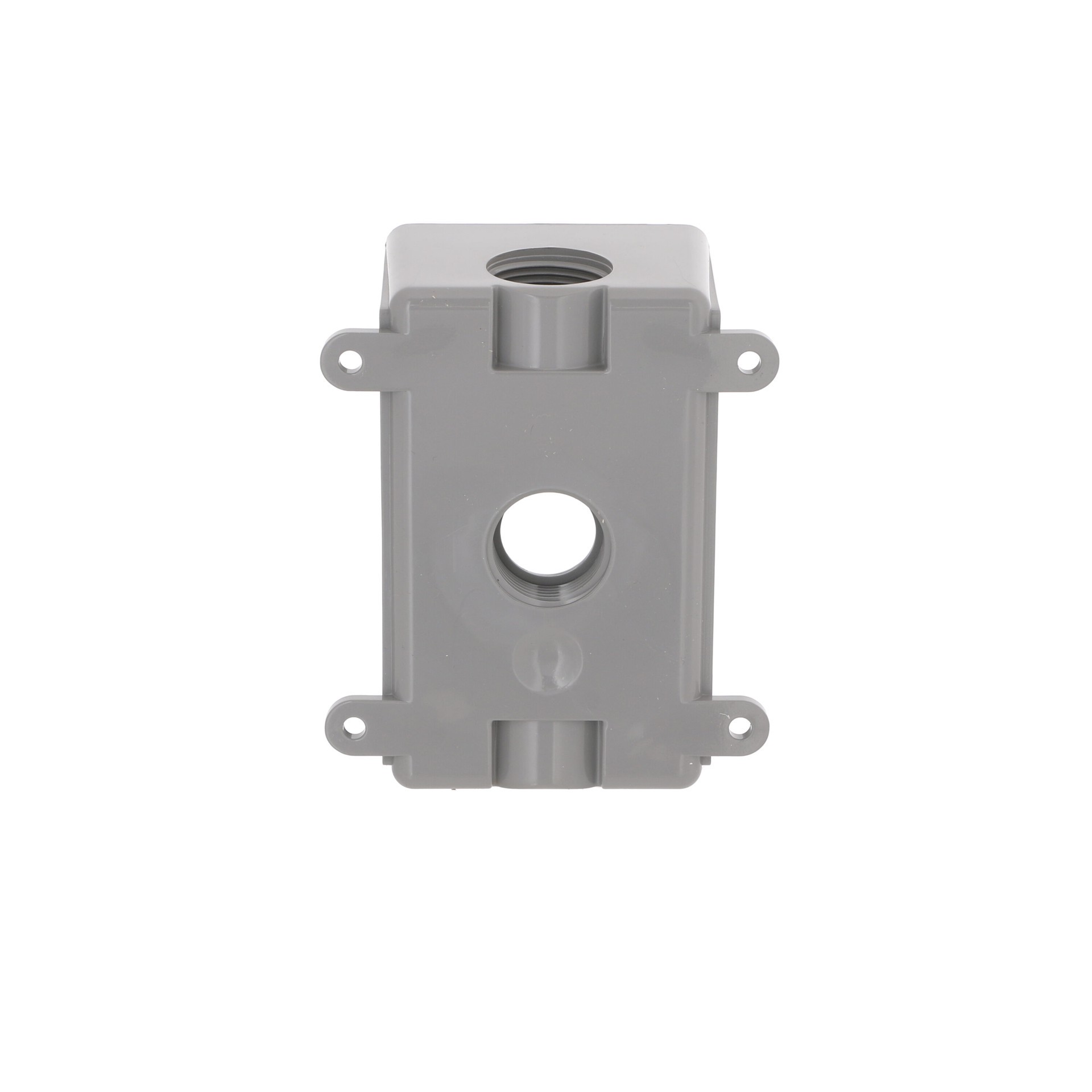 Durable high-impact PVC construction. Three outlets that fit either 1/2 in or 3/4 conduit. 2 in deep. 16.5 cu in capacity. Includes 3/4 in closure plugs and reducer bushings. NEMA 3R rated. cULus List…