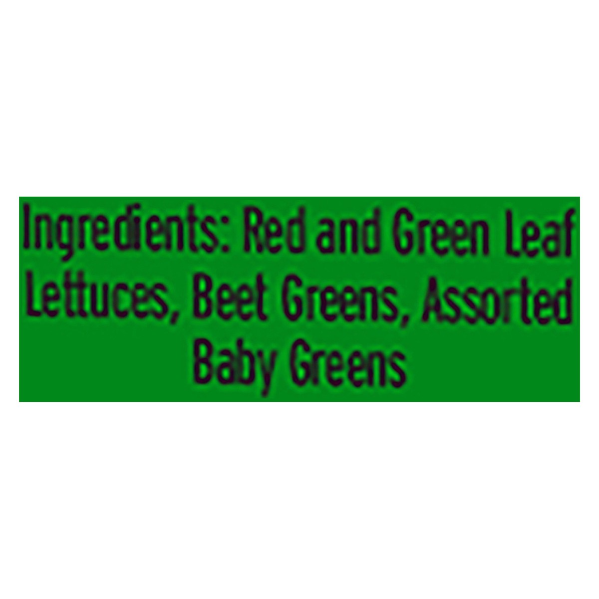 Red and Green Leaf Lettuces, Beet Greens, Assorted Baby Greens.