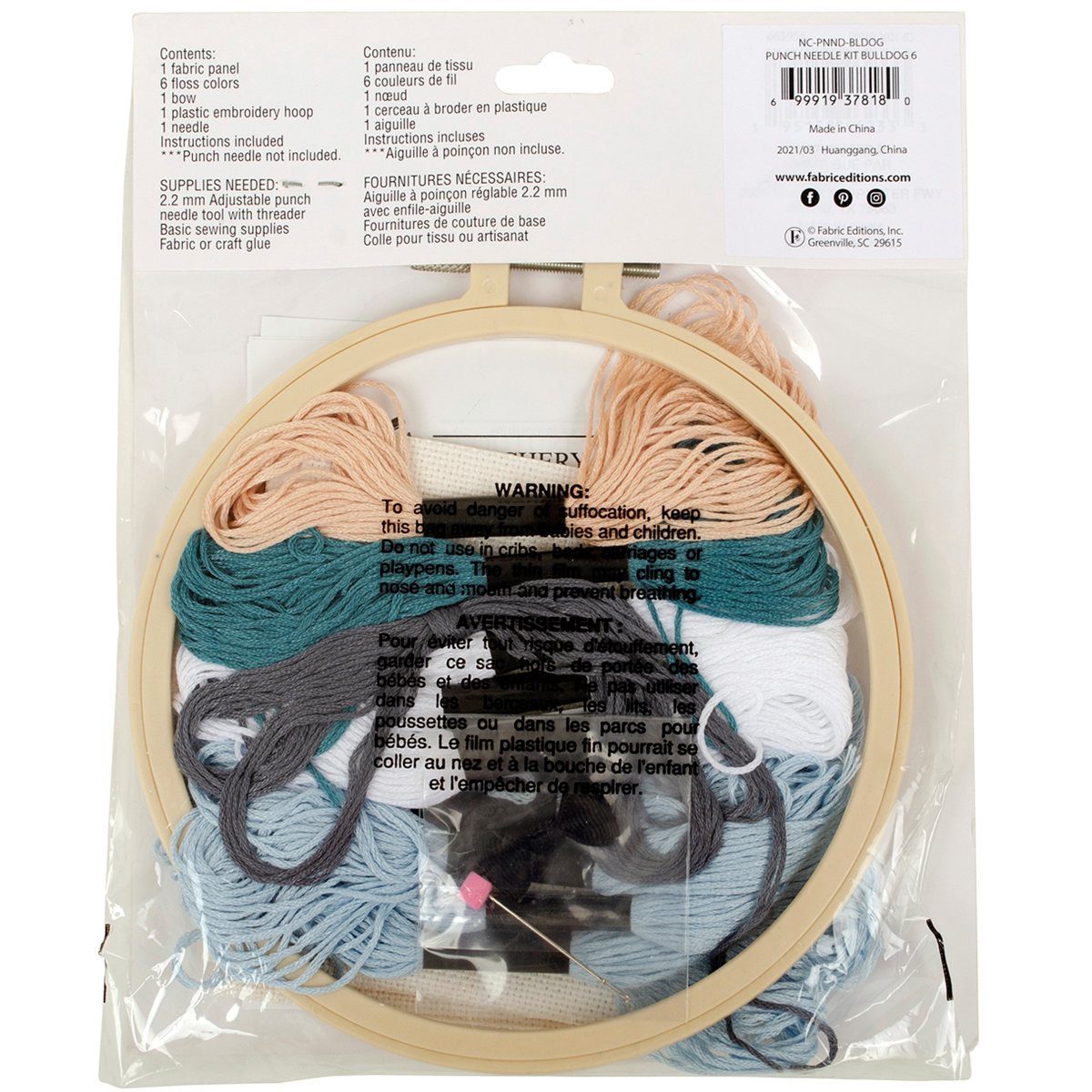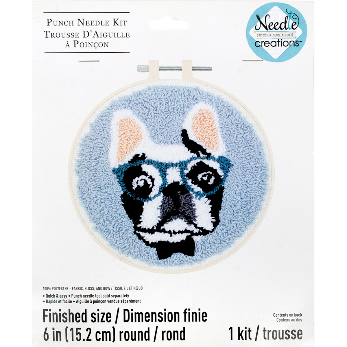 This punch needle kit features a charming bulldog design set in a 6-inch embroidery hoop, perfect for beginners and craft lovers alike. Inside youll find fabric panel, a sturdy hoop, vibrant yarn in c…