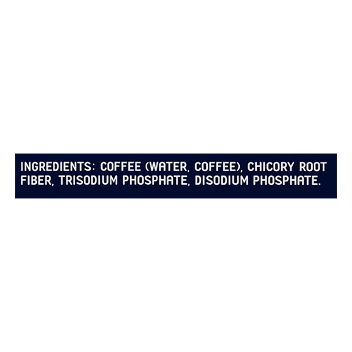 Coffee (Water, Coffee), Chicory Root Fiber, Trisodium Phosphate, Disodium Phosphate.