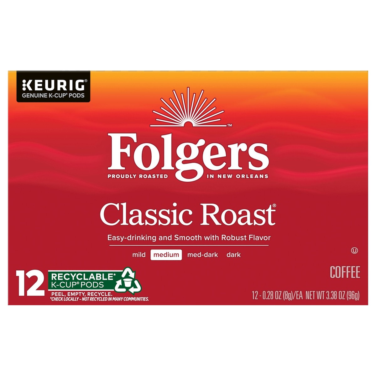 Folgers Classic Roast K-Cup Pods, Medium Roast Coffee, 12 Count