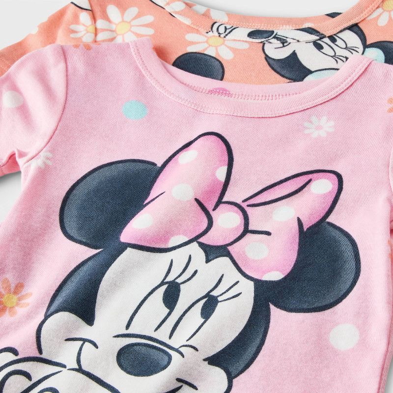 Mickey Mouse & Friends Toddler Girls' 4pc Snug Fit Disney Minnie Mouse Cotton Pajama Set - Pink/Orange 18M
